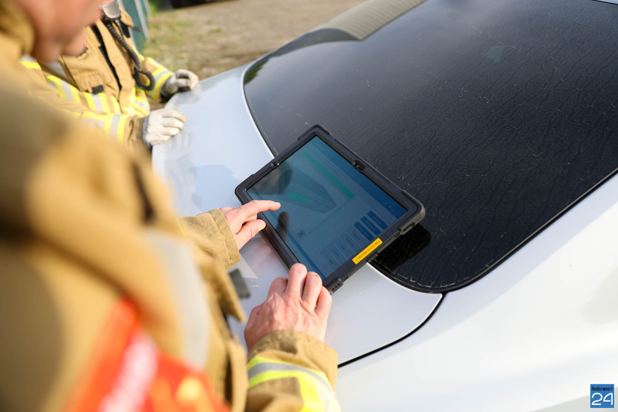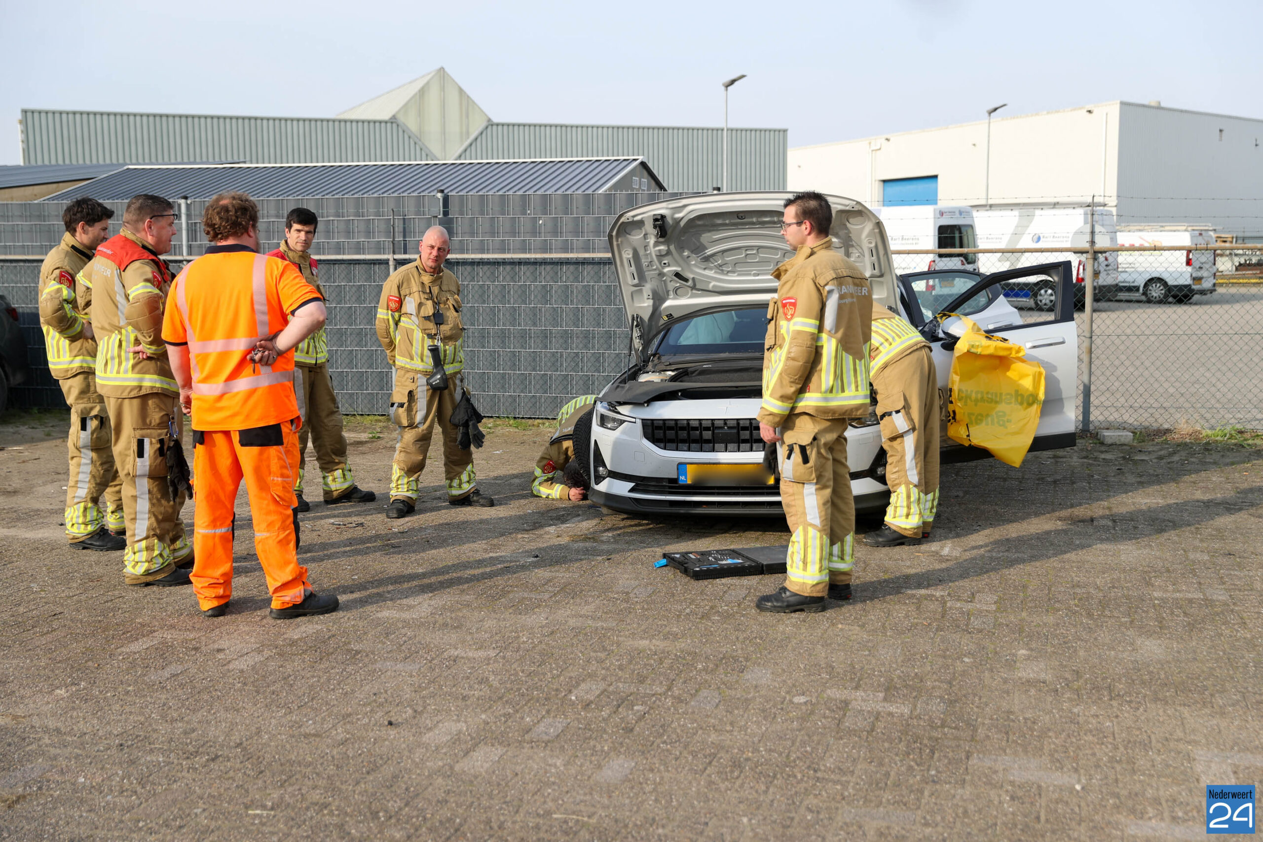 Vrijdagavond om 18:30 uur werd een melding gemaakt van een elektrische auto die mogelijk een probleem had met een beschadigd accupakket. De auto stond geparkeerd op de opslagplaats van een berger die gehuisvest is op industrieterrein Pannenweg in Nederweert.