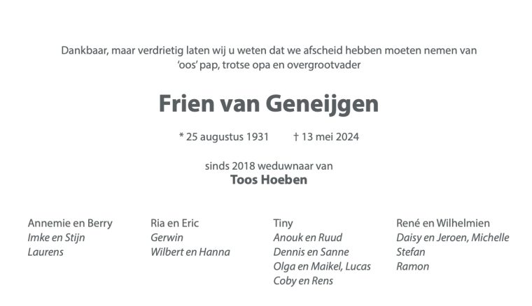 Gecontroleerd en heel veel sterkte voor Frien’s naaste en allen die hem lief hadden.