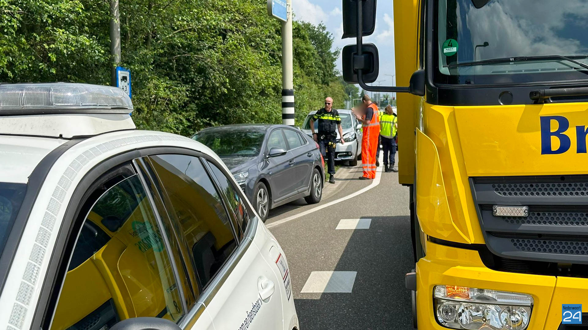 Beide auto’s reden vanuit Nederweert in de richting van Weert. Net voor verkeerslichten remde de voorste auto, waarna de achterste auto er achterop reed. Een ambulance kwam ter plaatse en onderzocht de inzittenden. Een mevrouw uit de achterste auto is ter controle meegenomen naar het ziekenhuis.
