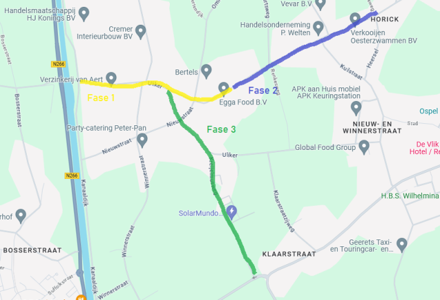 • Fase 3: aftakking Uliker (t.h.v. Uliker 20) tot T-splitsing van Kreijelmusweg in Ospelseweg (week 33 t/m week 36)