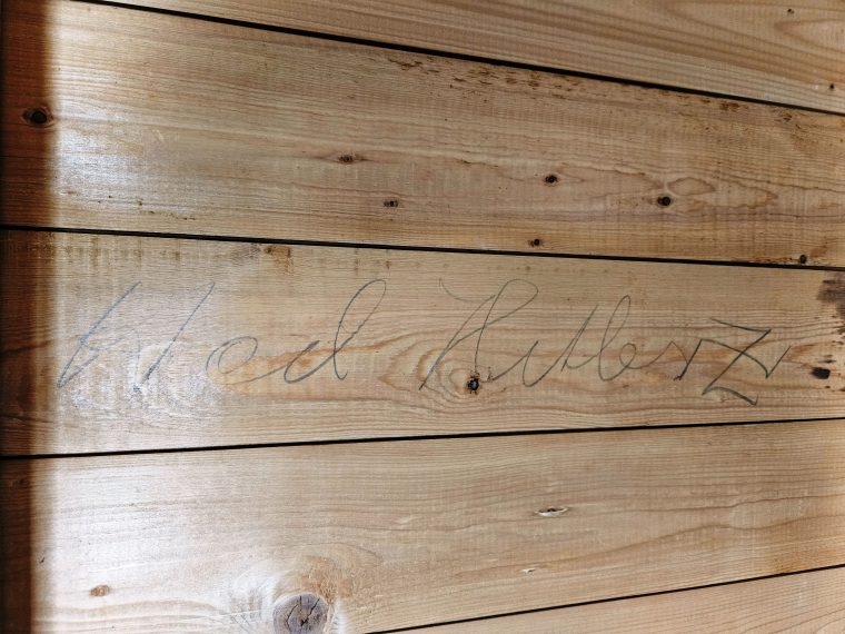 Naast een paar andere en deels onleesbare namen (Harrie, Piet en Richard) staat er op de houten wand nog een opmerkelijke tekst, namelijk ‘Heil Hitler’ gevolgd door een hakenkruis in spiegelbeeld. Dat is wel enigszins bizar te noemen en als de tekst van ná 1940 zou dateren dan had die heel wat wenkbrauwen doen fronsen. Op zijn minst bij bewoner meester Nieskens, die fervent anti-Duits was. Maar in 1936 was Nederland nog niet bezet en was Heil Hitler roepen nog niet zo beladen als het vier jaar later zou zijn. Toen hing de vlag er natuurlijk heel anders bij.