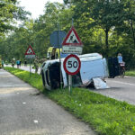 Beide voertuigen kwamen op de zijkant terecht. Het busje kwam in een sloot tot stilstand. Hoe het ongeval precies kon gebeuren wordt door de politie uitgezocht. Niemand raakte bij het ongeval gewond. De hulpdiensten kwamen met diverse voertuigen ter plaatse voor hulpverlening.