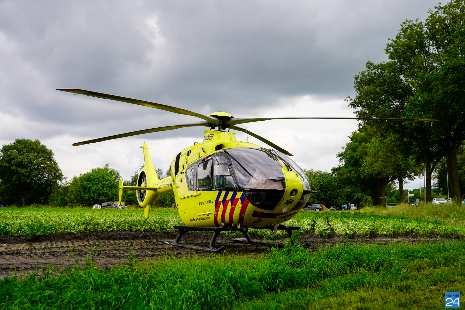 Dit gebeurde rond 14.35 uur. Hoe de botsing is ontstaan is nog niet duidelijk, het gaat om een eenzijdig ongeval. Hulpdiensten, waaronder ook de brandweer en een traumahelikopter, waren massaal aanwezig. Beide inzittenden zijn door de ambulance meegenomen naar het ziekenhuis.