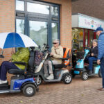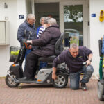 Samenzijn, gezellig toeren door de omgeving en genieten van de natuur was ook vandaag weer het doel voor de deelnemers. Na even geschuild te hebben tegen de regen gingen de deelnemers gezamenlijk op stap richting de Wouterbergen in Someren, waar ze konden genieten van een tussenstop met een drankje en een versnapering. De monteurs van Kersten Hulpmiddelen voerden voor het vertrek nog een banden-check uit.