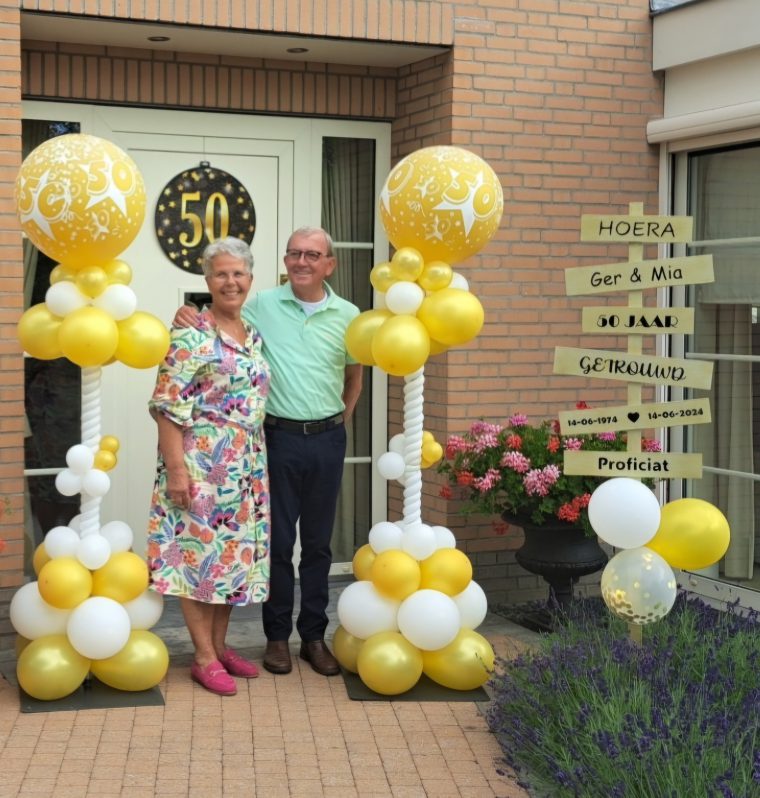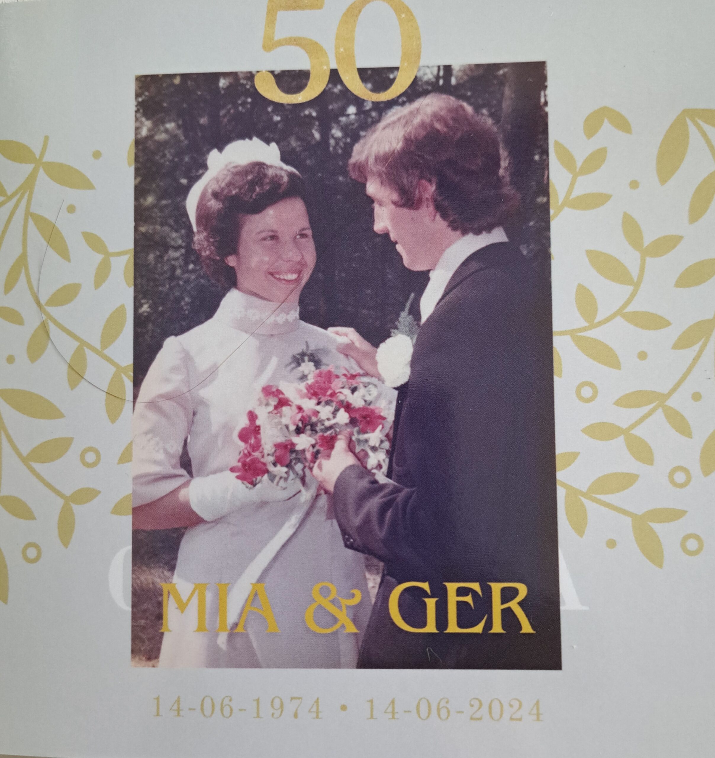 Mia en Ger van harte gefeliciteerd met jullie gouden huwelijk we wensen jullie nog vele jaren in goede gezondheid en een hele fijne dag