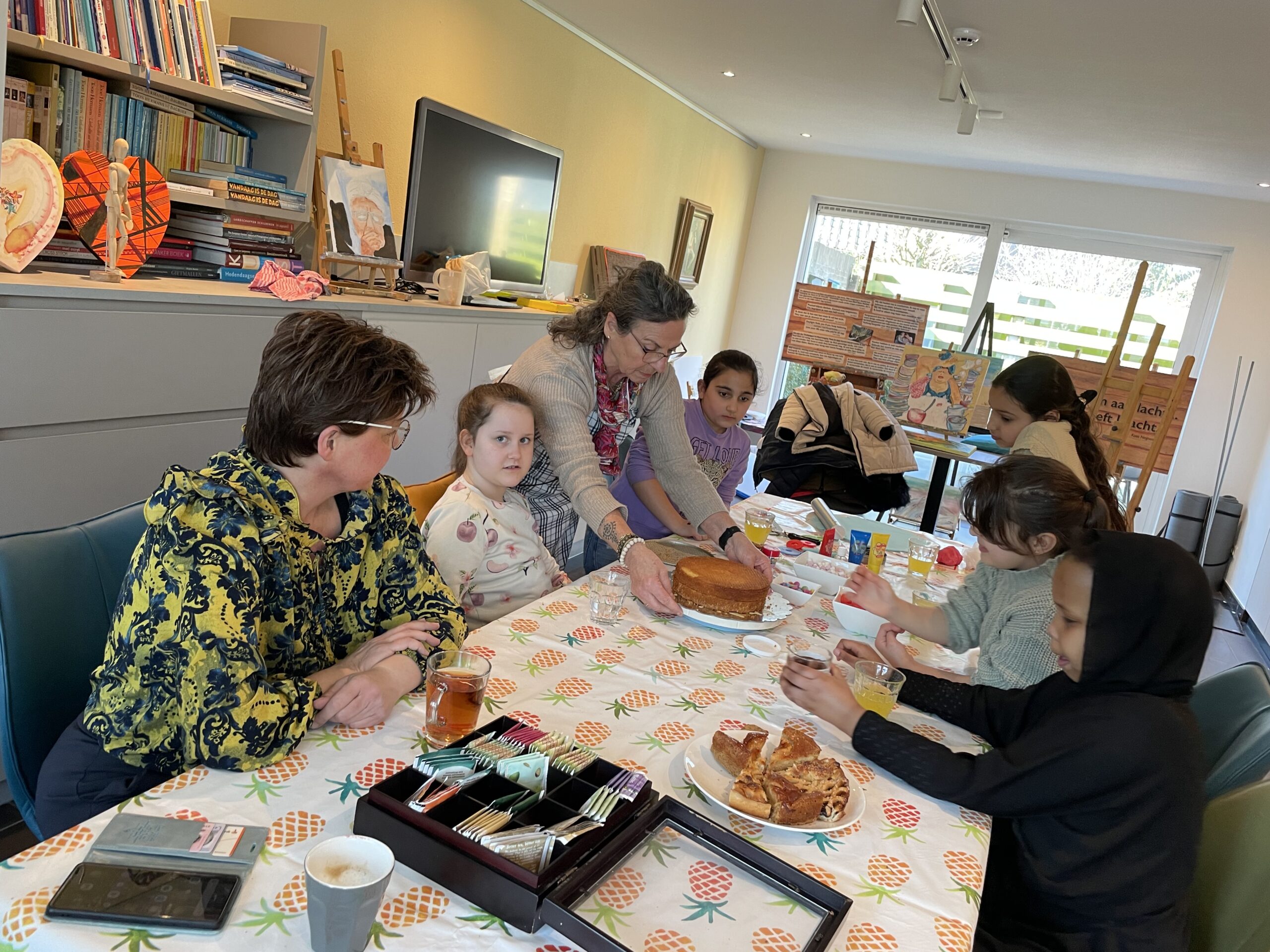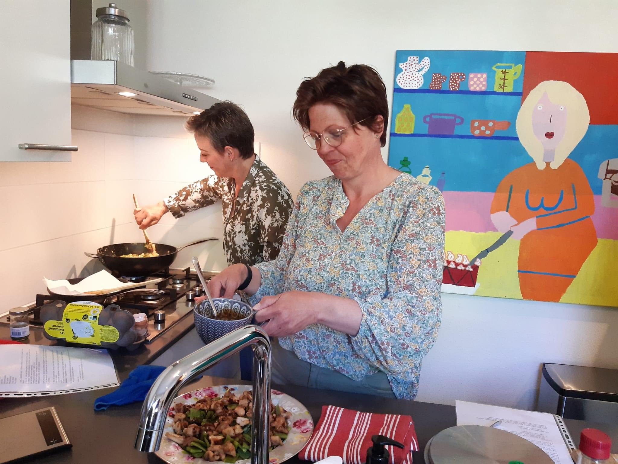 Danny Moonen genoot van de kookworkshops in het Toon Hermans Huis. Heel bijzonder was dat zij en haar man Ron in het huis, samen met leerlingen van de school een mooie Toons Taart versierden ter ere van haar zelf.