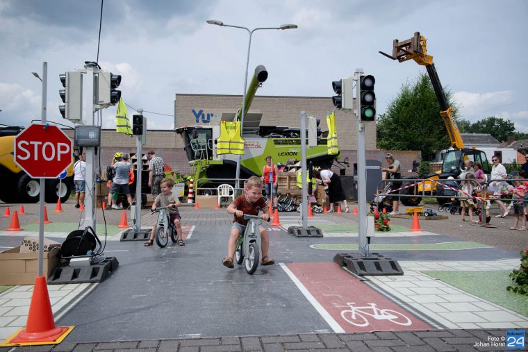 Net als vorig jaar heeft de vereniging Boeren van Nederweert het plein achter Florence weer omgetoverd in een verkeersplein met loopfietsjes, traptractoren en échte verkeerslichten. Daaromheen hebben de boeren dit jaar een parcours uitgezet dat jou laat zien hoe de productie van gras naar melk en van aardappelen naar chips in haar werk gaat. Tijdens deze rondgang zie je ook de echte machines die de boeren hierbij op het land gebruiken. Denk aan een grasmaaier, een tractor met schudder, een pootmachine en een rooier.