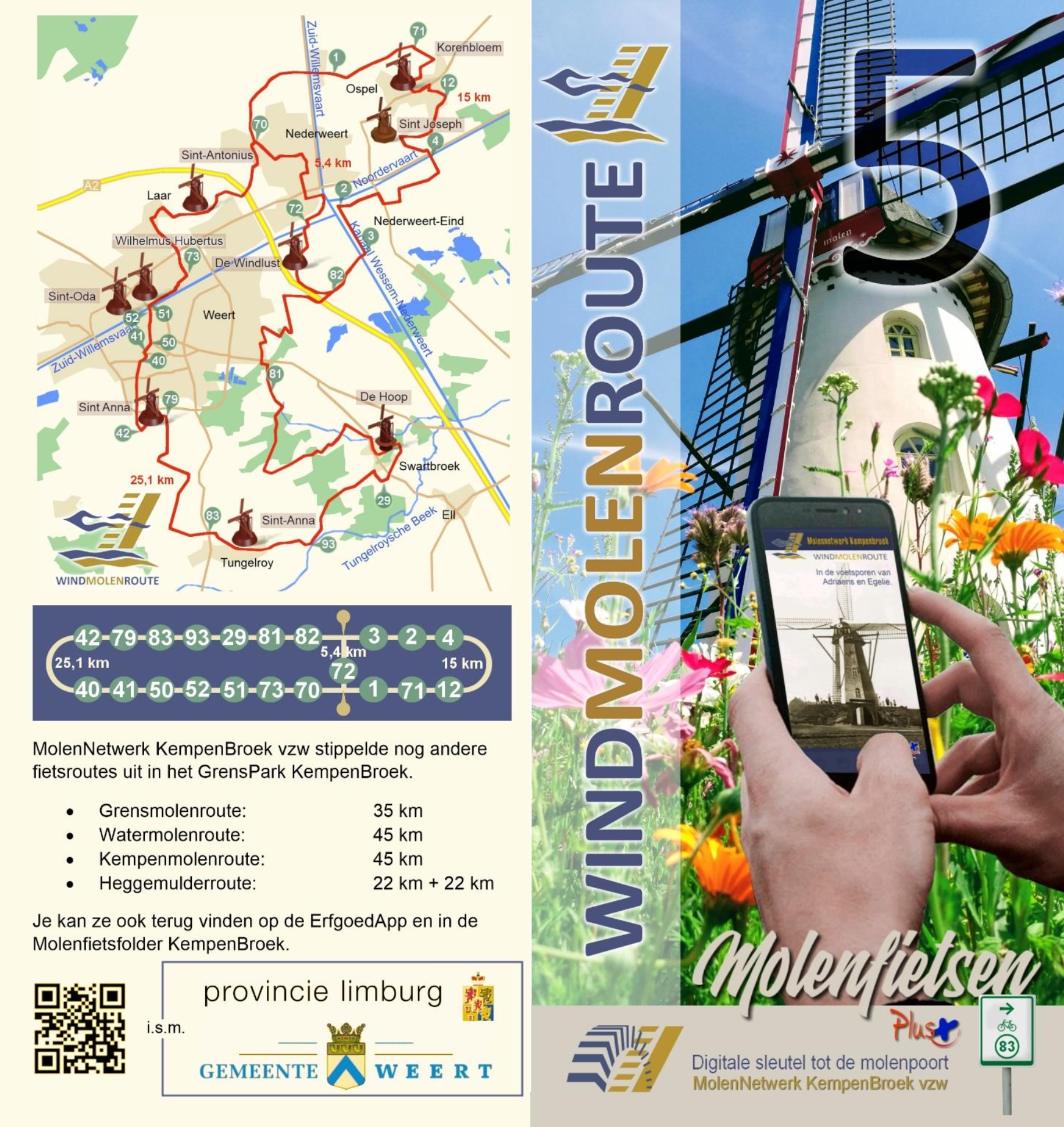 De Windmolenroute is meer dan zomaar een fietsroute binnen het fietsknooppuntennetwerk van het Land van Weert en Nederweert. Met de ErfgoedApp wordt elke fietstocht een unieke belevenis, waarbij je meer ziet en ervaart tussen de knooppunten die je misschien al eerder hebt bezocht.
