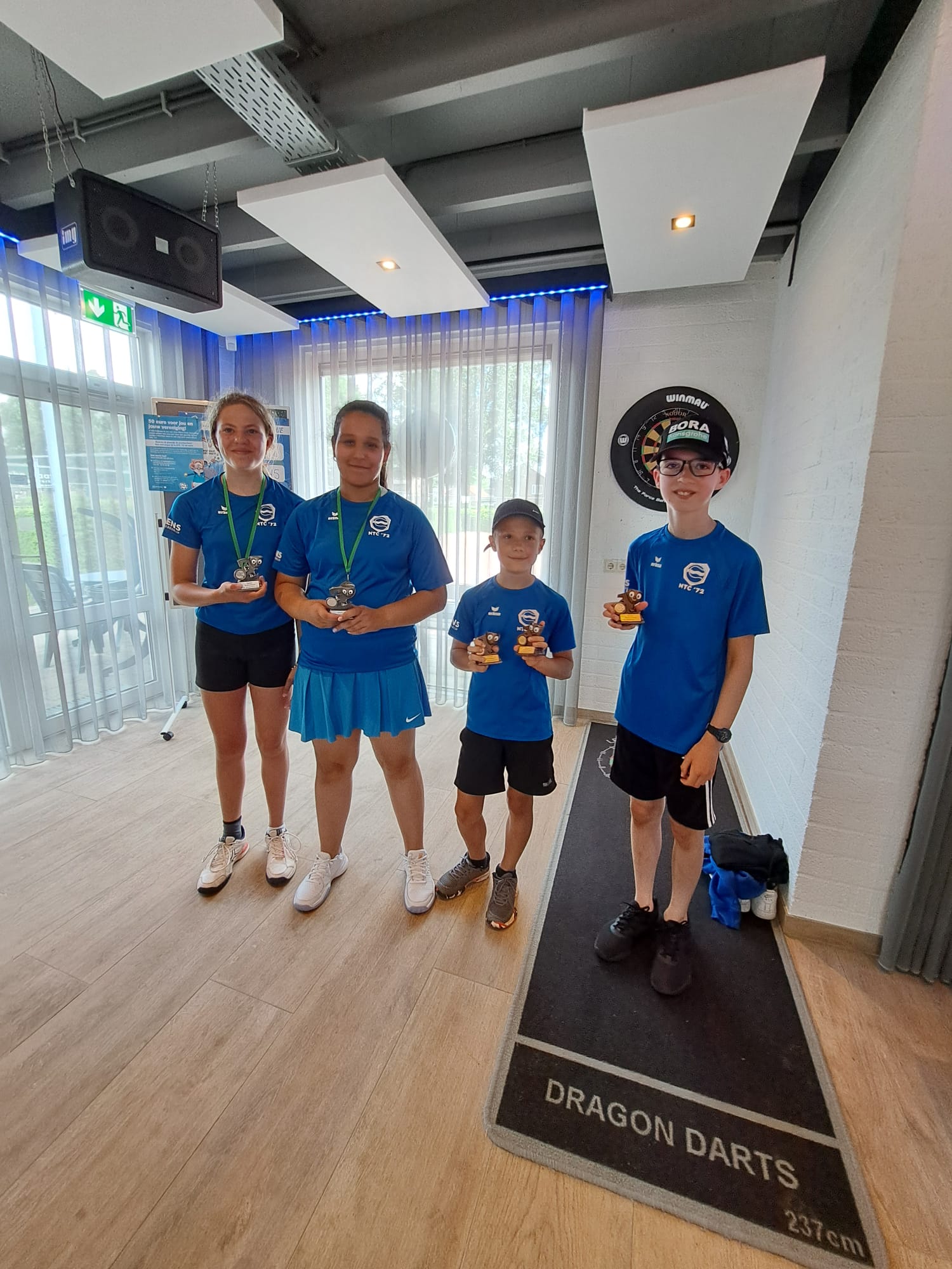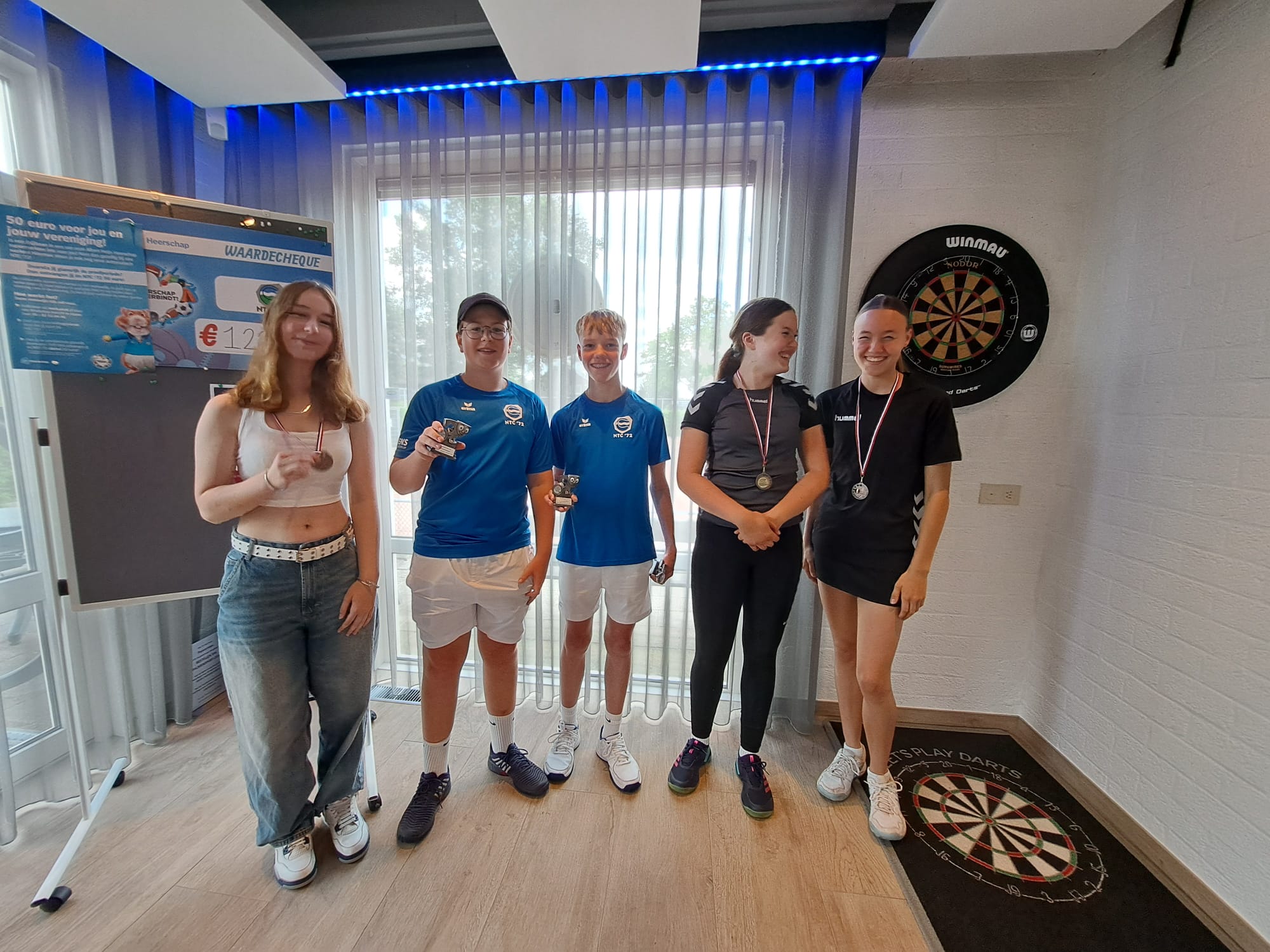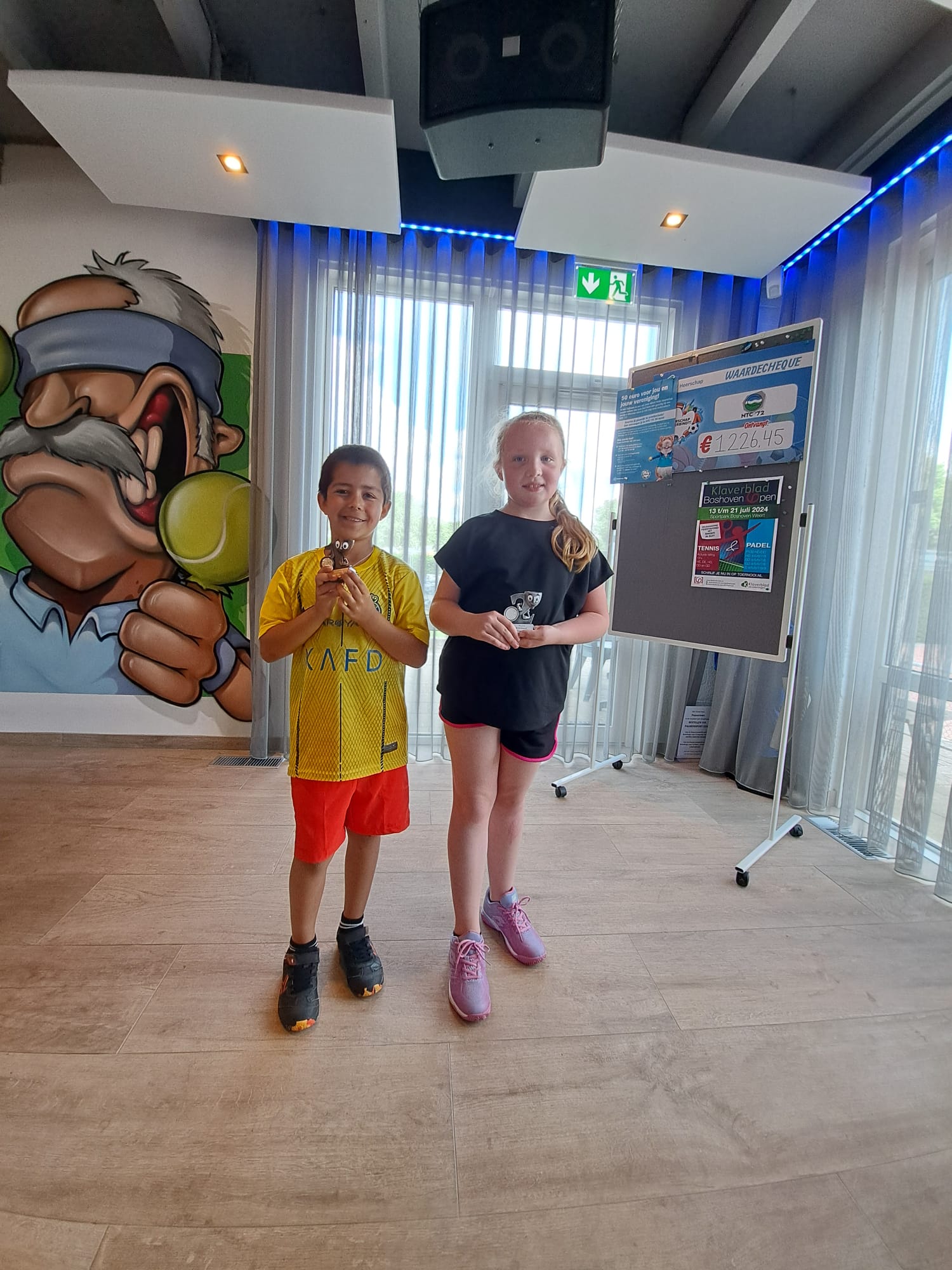 In totaal zijn er er 54 wedstrijden gespeeld, door de week na school en voor de wedstrijden van de senioren, in het weekend geconcentreerd in de ochtend, maar ook junioren en senioren door elkaar. De kinderen hebben allemaal super goed hun best gedaan in wisselende weersomstandigheden, deze ene dag (flinke) regen, de andere dag veel zon en warm: “We hebben kunnen genieten van mooie wedstrijden, super rally’s en regelmatig spectaculaire punten. Een dikke felicitatie voor alle deelnemers, helaas kan niet iedereen winnen.”