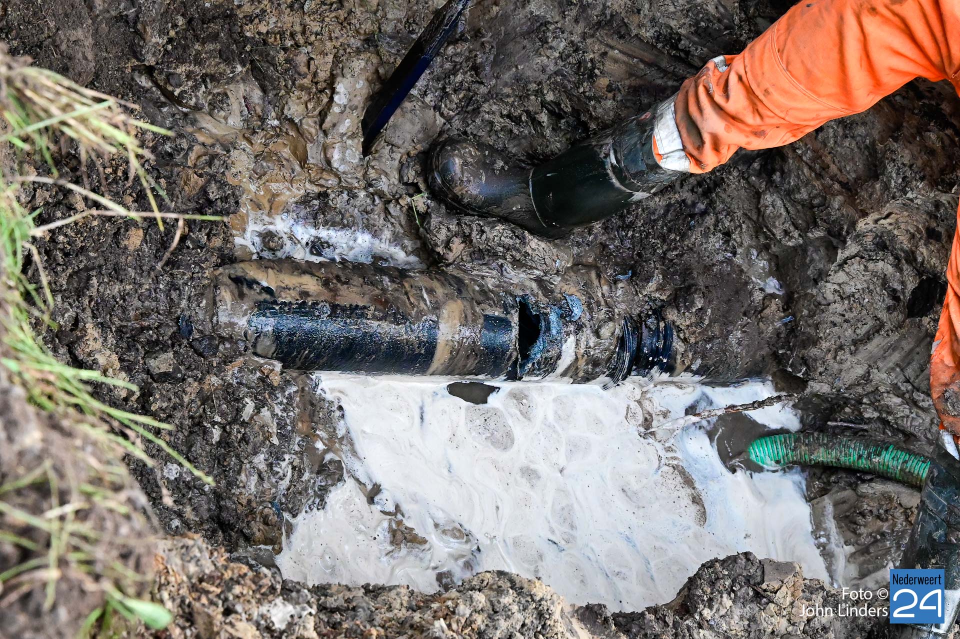 Waterleiding breuk Ospeldijk: Buurt voorlopig nog zonder water