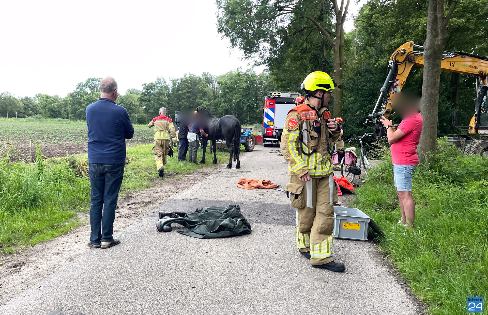 Brandweer redt paard uit sloot na ongeluk met koets in Nederweert-Eind