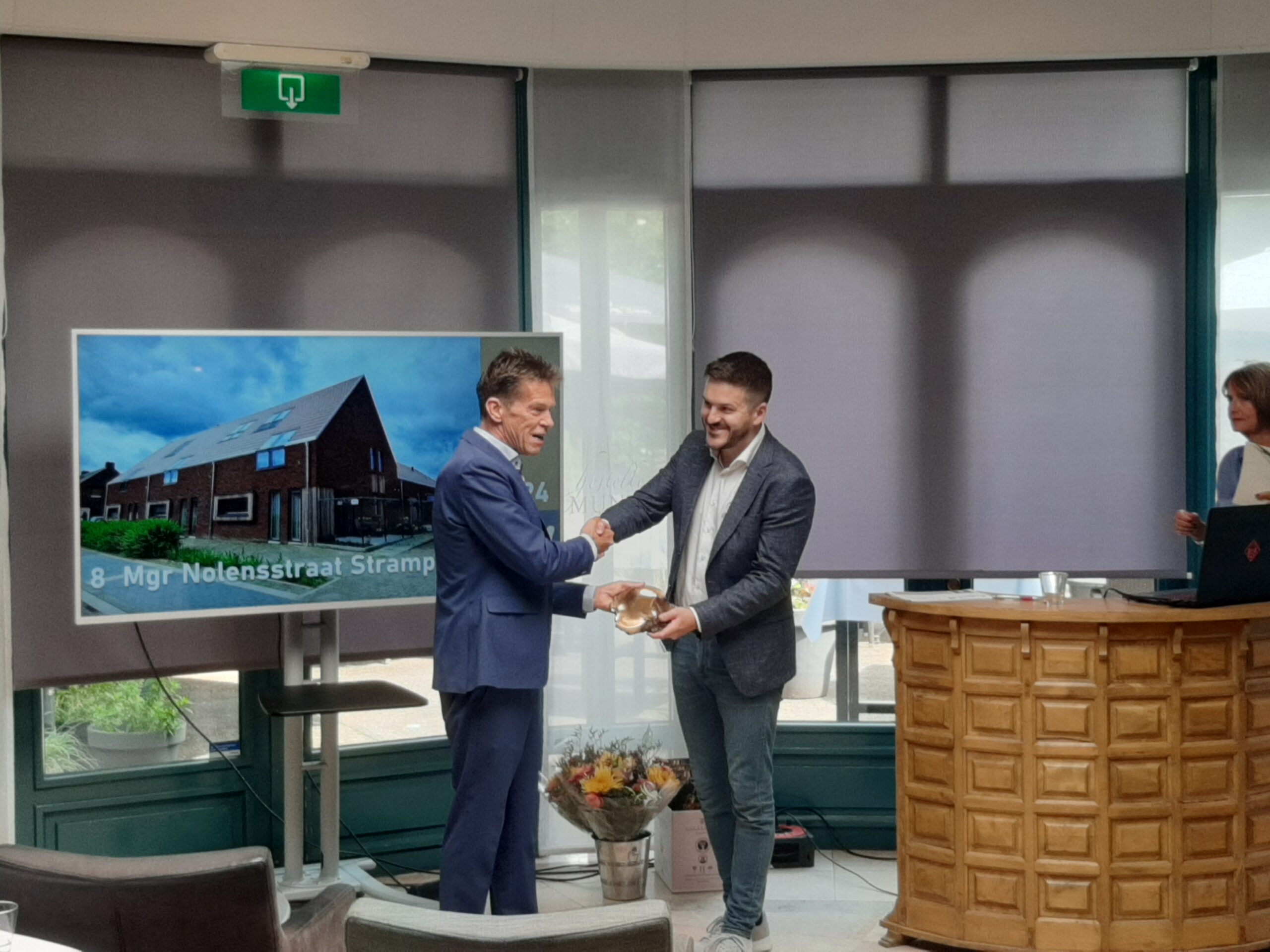 De tweede plaats was hier een ex aeqou van het hofje ‘De Heerlijckheid’ aan de Waagmeestershof in Weert en de ‘Bakkerij’ aan de Monseigneur Nolensstraat in Stramproij. De beste motivatie voor het winnend project is beloond met een cadeaubon voor een diner voor twee bij Restaurant Marrees.