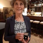 Tenslotte Mia Dohmen-Pepels. De voorzitter kenmerkte haar als een persoon die niet op de voorgrond hoefde te staan om belangrijk te zijn voor anderen. Ze is altijd helpend aanwezig als het nodig is; behoort tot het bezorgteam van informatie en briefing aan de gasten en heeft bezoekwerk gedaan. Zij doet al deze zaken met een glimlach en plezier. En dat al sinds 1998! Voor het bestuur alle reden om haar – met instemming van de landelijke Vereniging Zonnebloem – de versierselen met oorkonde van het 25- jarig jubileum uit te reiken. De voorzitter hoopt nog jaren op haar de mogen rekenen!