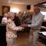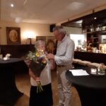Ook Elly Gofers stopt met het vrijwilligerswerk en wordt gast van de afdeling. De eerste reactie toen de voorzitter haar naar voren vroeg was: “Mèr van mich wei-je neet zoe vuel!” Dat klopte, maar Elly was op een andere manier belangrijk. Met name voor haar inmiddels overleden man. Voorzitter: “Altijd samen met en veel aandacht voor Henk, laten zien dat jullie bij elkaar hoorden. Met de vele uren begeleiding voor de werkgroep handwerken; collecte lopen voor Zonnebloem en KBO; kascontrole van de afdeling; was Elly belangrijk voor de medemens. Een stille kracht met veel betekenis.” De bos bloemen als afsluitende blijk van waardering was dan ook zeer verdient zo bleek uit het applaus van de aanwezigen.