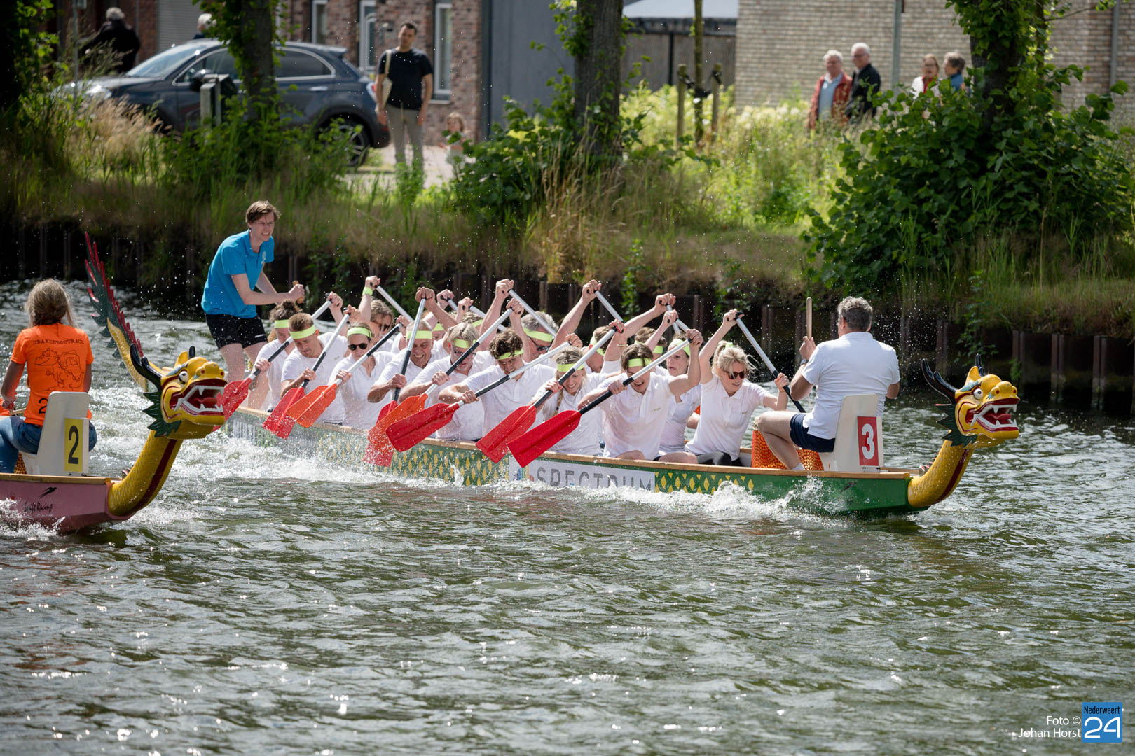 Voor wie niet bij was: een drakenbootteam bestaat uit een trommelaar en zestien peddelaars, of acht bij een kleine boot. Iedereen kan deelnemen aan drakenbootvaren, ervaring is niet nodig. Het gelijktijdig insteken van de peddels is, naast kracht, bepalend voor de snelheid. De drakenbootraces zijn geweldig om aan mee te doen en spectaculair om naar te kijken. Ieder team vaart meerdere keren en het snelste team wint.