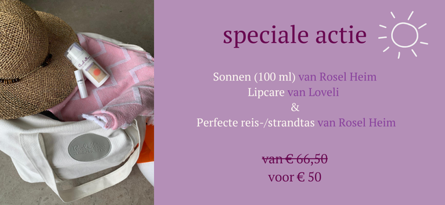 Toch heb ik liever een wit laagje, dan minder gezonde crèmes. Rosel Heim gebruikt geen nanodeeltjes, waardoor hun zonnebrandcrèmes volkomen veilig zijn. Omdat ik jullie ook graag hele fijne momenten in de zon gun, heb ik momenteel een speciale actie zodat je op een veilige manier van de zon kunt genieten!