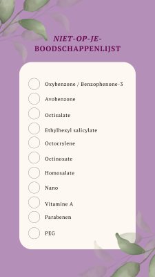 Laat je niet misleiden door mooie verkoopverhaaltjes zoals ‘op basis van biologische kokosolie’, ‘bevat natuurlijke ingrediënten’, of ‘bevat geen nanodeeltjes’. Zelfs producten uit zogenaamd gezonde winkels en op gezondheidswebsites kunnen deze misleidende claims bevatten. Dergelijke leuzen suggereren dat het hele product natuurlijk is, maar dat is zelden het geval. Wil je meer lezen over zonnebrandcrèmes en waarom deze ingrediënten niet in je product moeten zitten? Klik dan hier.