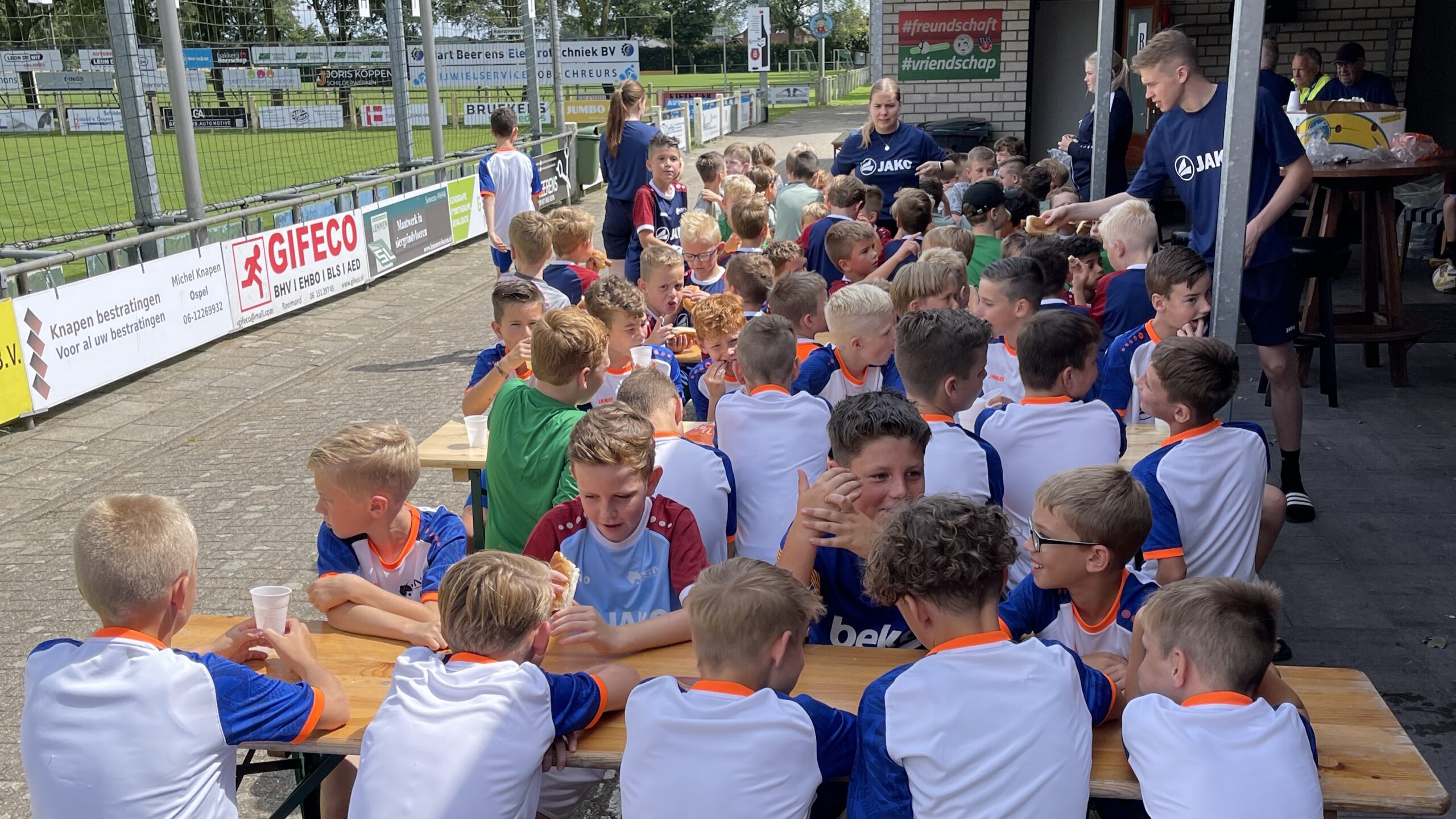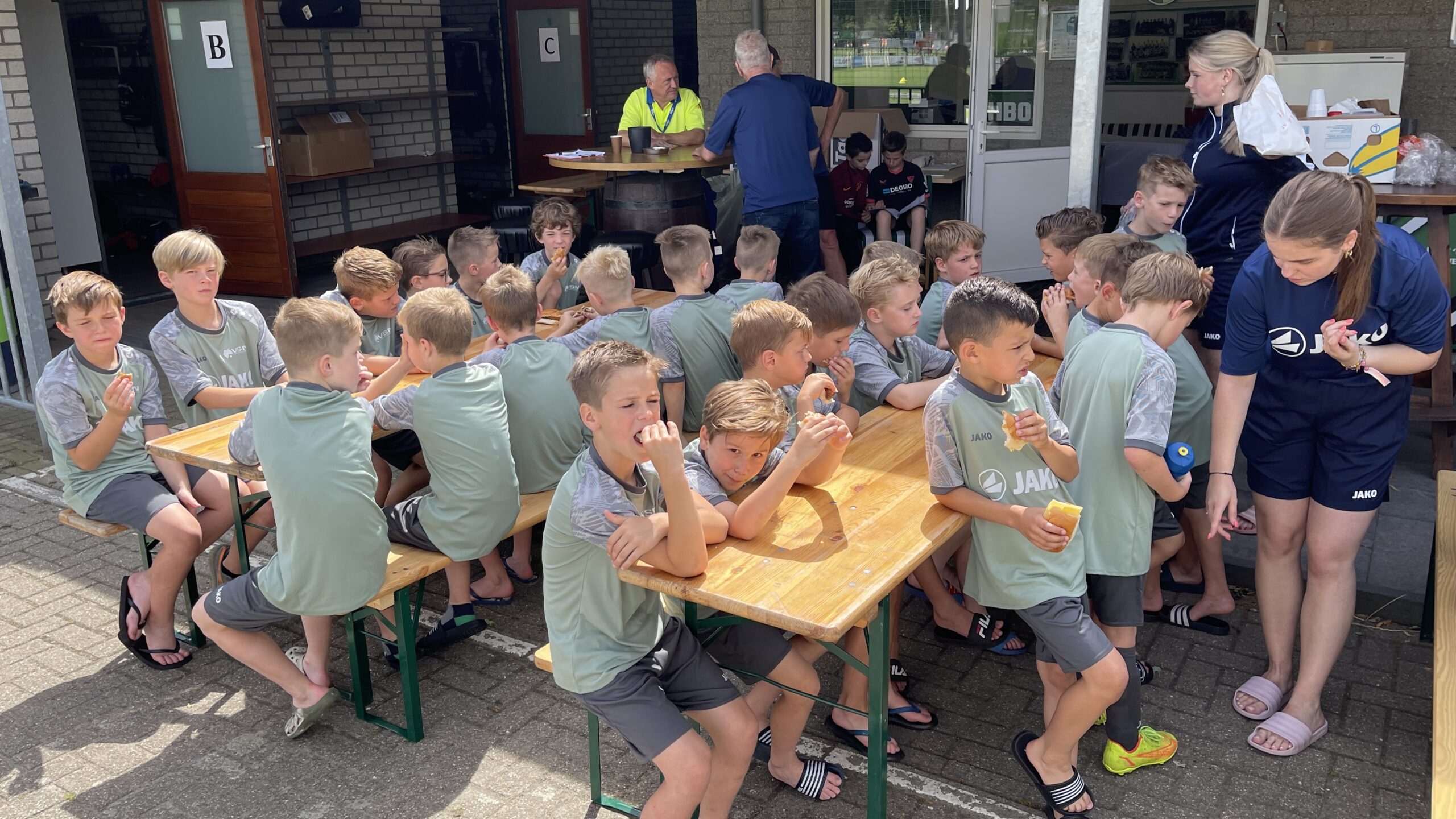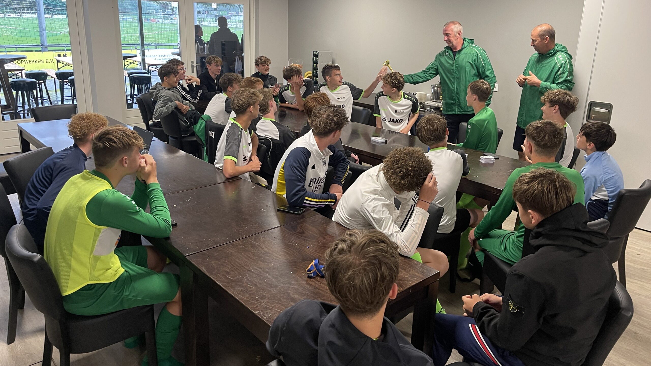 Op vrijdagmorgen werd duidelijk dat de laatste programma onderdelen niet afgewerkt konden worden. Tot aan de lunch werden de spelers door de leiders bezig gehouden, maar het weer wilde maar niet verbeteren. Daarom werden de prijzen en de sportiviteitsonderscheidingen per groep in de kleedlokalen uitgereikt. Dit met dank aan de leiding van de voetbaldagen. Onder hen de grote groep jonge trainers en leiders die we speciaal willen bedanken voor hun inzet.