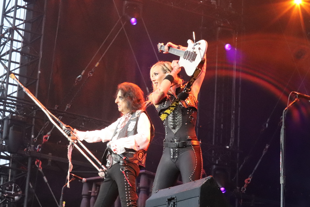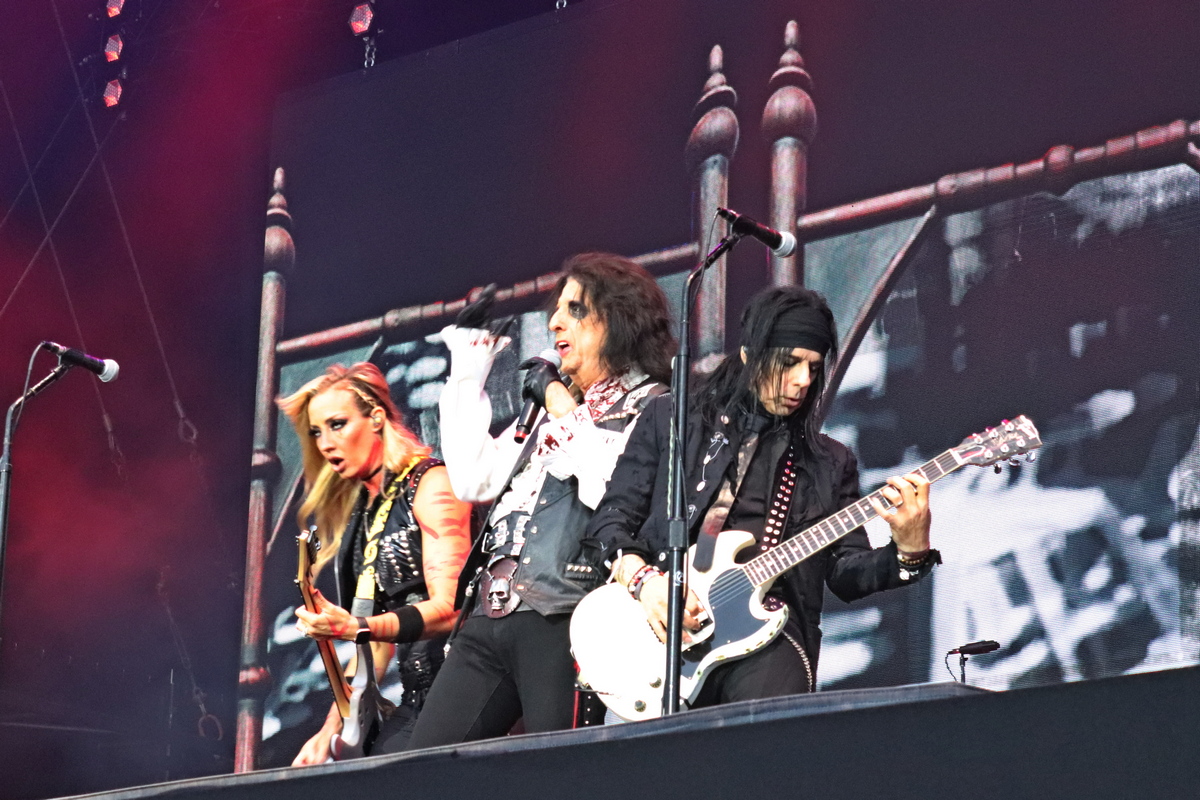 Slechts een jaartje jonger dan Patti Smith, maar de 76-jarige Vincent Damon Furnier, beter bekend als Alice Cooper, maakt van zijn optreden een sprookje, dat getuigt van een energie, waar menige tiener jaloers op zou zijn. In zijn prachtige decor, want zo mag je zijn podiumopbouw gerust noemen, blijft Cooper alle hoeken en gaten gebruiken en zet zijn medespelers aan tot even extroverte bewegingen als die van hemzelf. Vooral gitariste Nita Strauss spreekt tot de verbeelding van velen en ik hoorde een toeschouwer zelfs zeggen: “Als ik toch een half uurtje haar gitaar mocht zijn.” Het optreden van Cooper & Co staat als een huis en nummers als “Poison”, “Schools Out” en “Elected” komen in vliegende vaart voorbij. Cooper for President!
