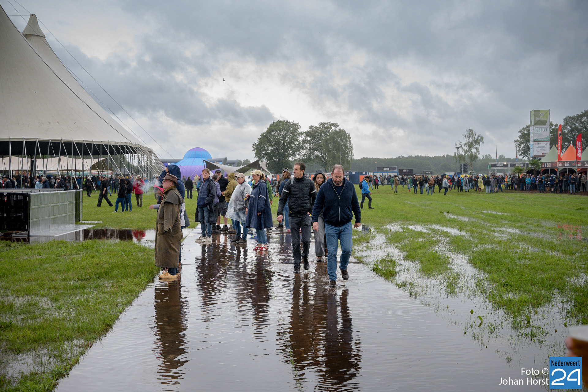 Ondanks de uitdagingen door het weer, blijft de sfeer op Bospop 2024 goed en wordt er volop genoten van de optredens en festiviteiten.