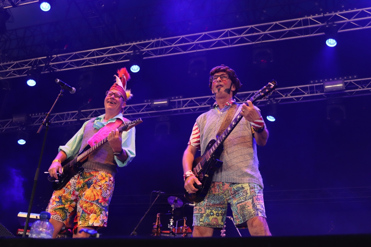 Na een vorig jaar door weersomstandigheden gecanceld optreden mocht Boaz zaterdag in de herkansing. Heerlijk ontspannen vertolkte hij zijn liedjes over alledaagse dingen alsof het dagelijkse kost voor hem is. Pas 21 jaar en toch al zo’n volwassen performance, knap. Fijn om naar te kijken en luisteren. In de tent begon om 13:30 uur de 2024 World Tour van Harry & de Gebroeëke Zwiêgelkes, een tour die een uurtje later alweer ten einde zou zijn! Maar in dat uurtje werd dan ook alles gegeven om het publiek, dat niet alleen uit Weert kwam, te vermaken met dialectcovers van bekende nummers. Hoe gekkere teksten, hoe meer respons er kwam en iedere aanwezige, voor en op het podium, heeft een magistraal gezellig uurtje mogen beleven.