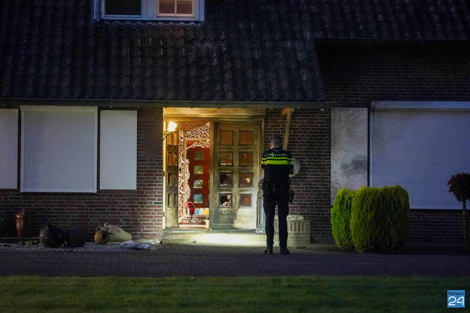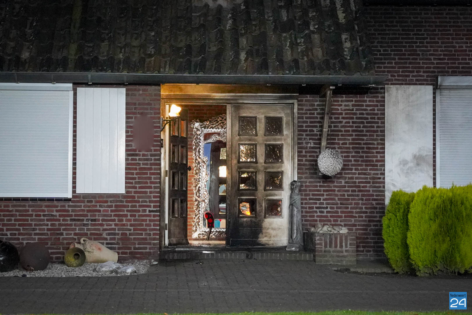 Explosie vernielt voordeur bij woning aan Ommelpad in Ospel