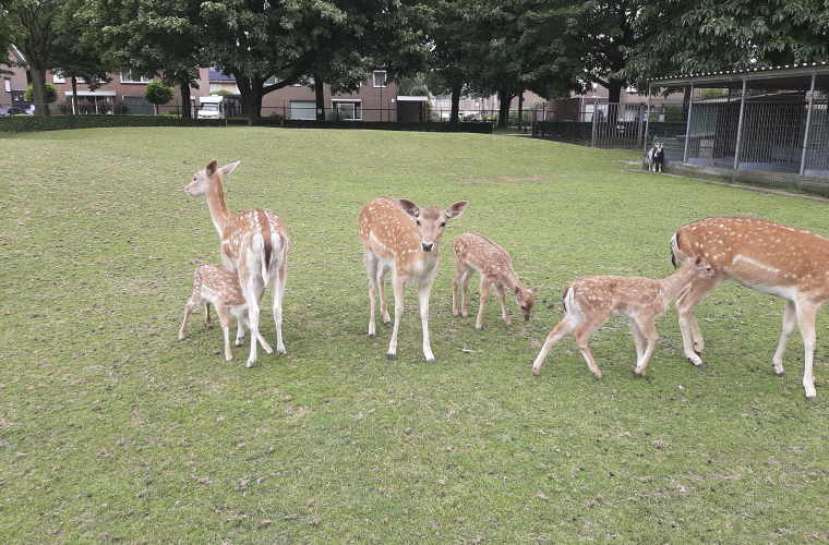 Vorige week zondag, op 7 juli, werd de dierenfamilie verder uitgebreid met de geboorte van een vierde hertje. Het viertal hertjes rent nu vrolijk en springend door de dierenweide, tot groot plezier van de bezoekers en verzorgers.