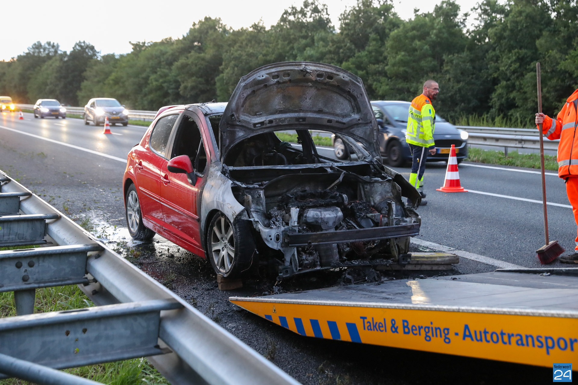 De inzittenden van een personenauto moesten dinsdagavond snel handelen toen ze rook uit hun voertuig zagen komen op de snelweg A2 bij Ell.