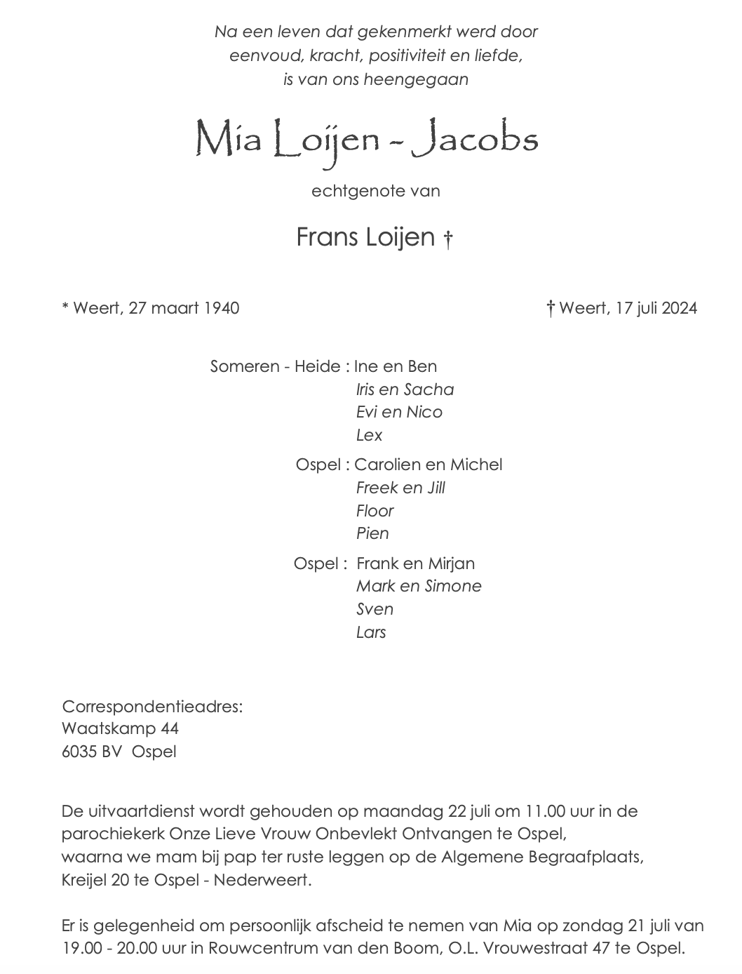 Overlijdensbericht: Mia Loijen – Jacobs †