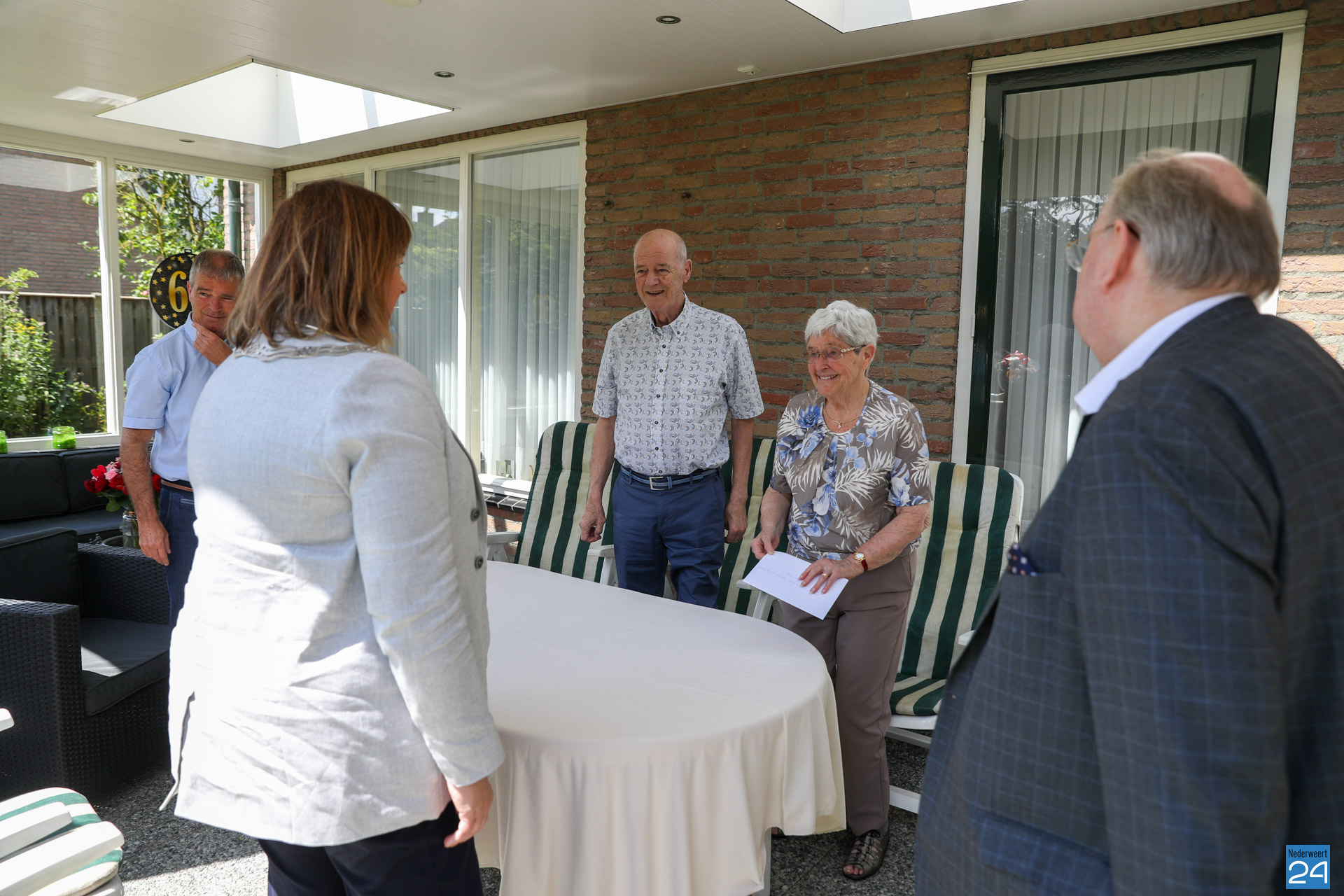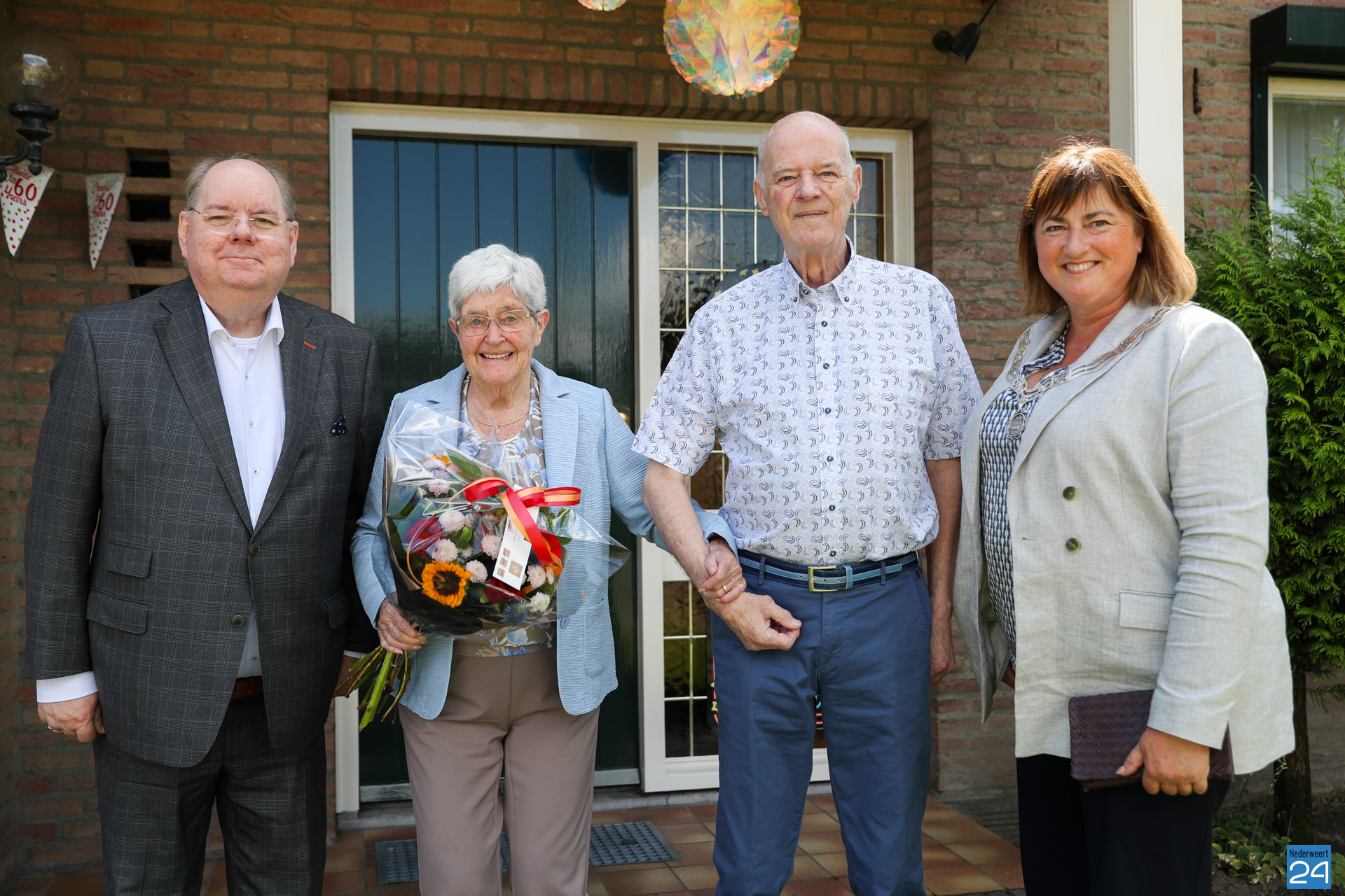 Het diamanten paar Jan en Betty Seijkens-van der Zanden uit Nederweert kreeg dinsdag bezoek van burgemeester Op de Laak en kabinetschef Giel Bruijnaers.