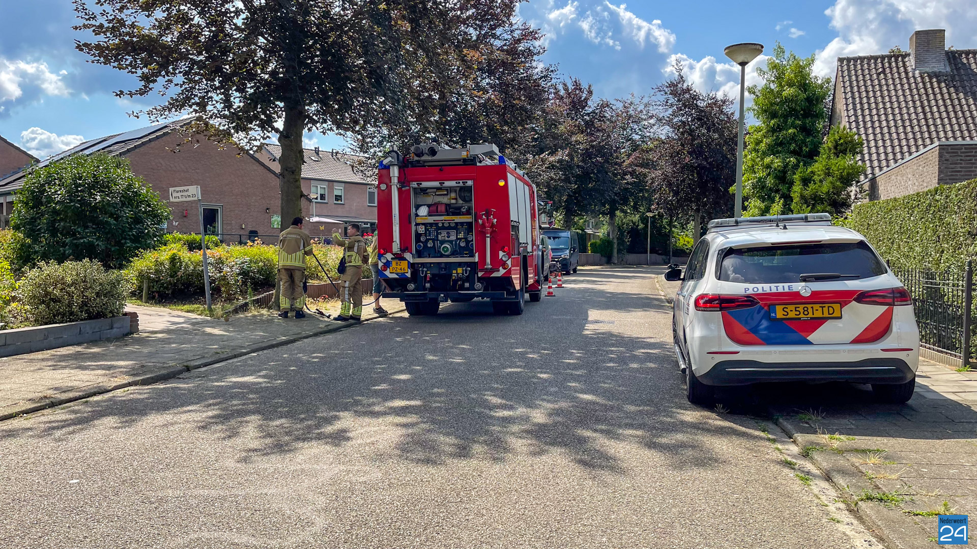 Omstanders zagen rook en gingen polshoogte nemen. Ze grepen direct in door 112 te bellen en bij de buren de tuinslang te halen. De brandweer van Heythuysen, waarvan de kazerne om de hoek ligt, was snel ter plaatse om het vuur definitief te doven.