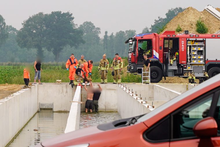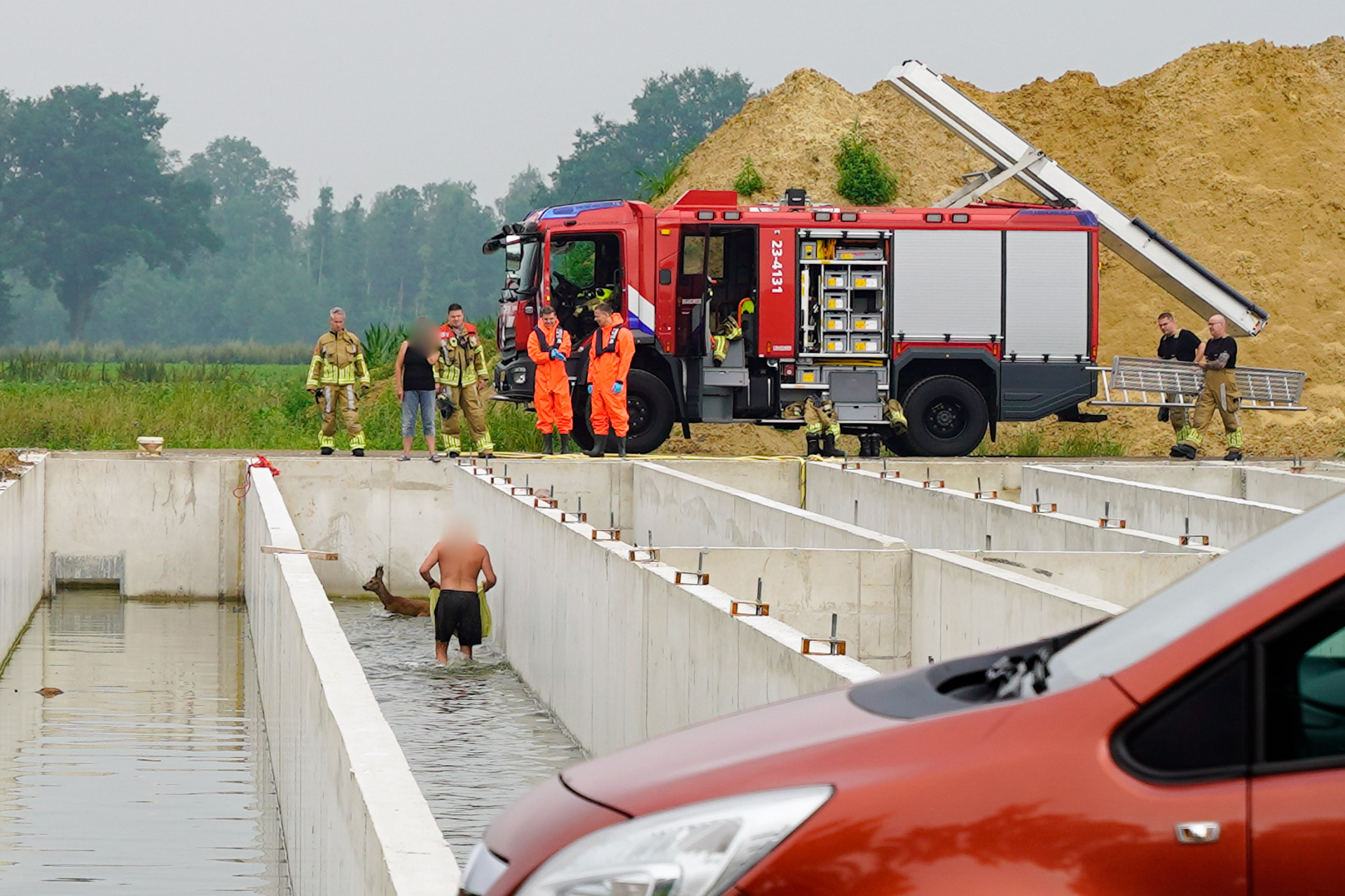 Volgens een woordvoerder van de brandweer staat er ongeveer 40 cm water in de kelder. Een ree kwam te overlijden. Het andere dier is op het droge geholpen.