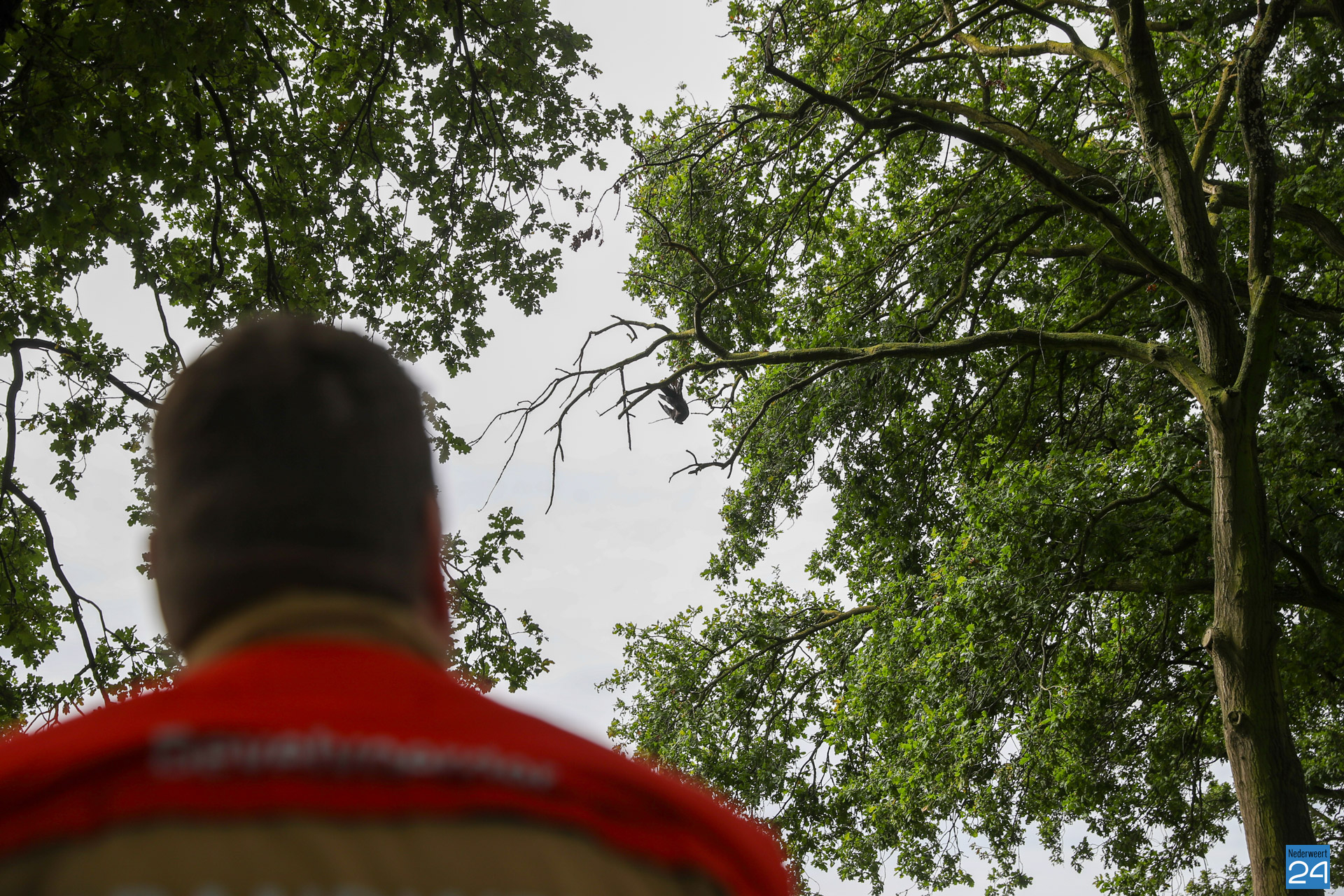 Een oplettende voorbijganger merkte de benarde situatie van de kraai op en schakelde onmiddellijk de hulp van de vrijwilligers van de Dierenambulance in. Ondanks hun snelle aankomst, slaagden zij er niet in de kraai los te krijgen. Daarom werd de brandweer van Nederweert ingeschakeld, evenals een ladderwagen van de brandweer uit Weert.