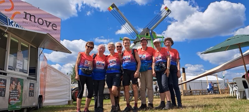 Zondag 28 juli stond de eerste buitenlandse training op het programma tijdens de molenfeesten in Molenbeersel. Hoewel er aanvankelijk een bordje werd gemist en het tweede deel van de route eerst werd gewandeld, kwam alles uiteindelijk goed. Moe maar voldaan keerde de groep terug naar Nederland.