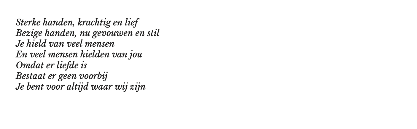 Klasgenootje Yvonne, Heel veel sterkte met het verlies van jullie moeder schoonmoeder oma, Toos.