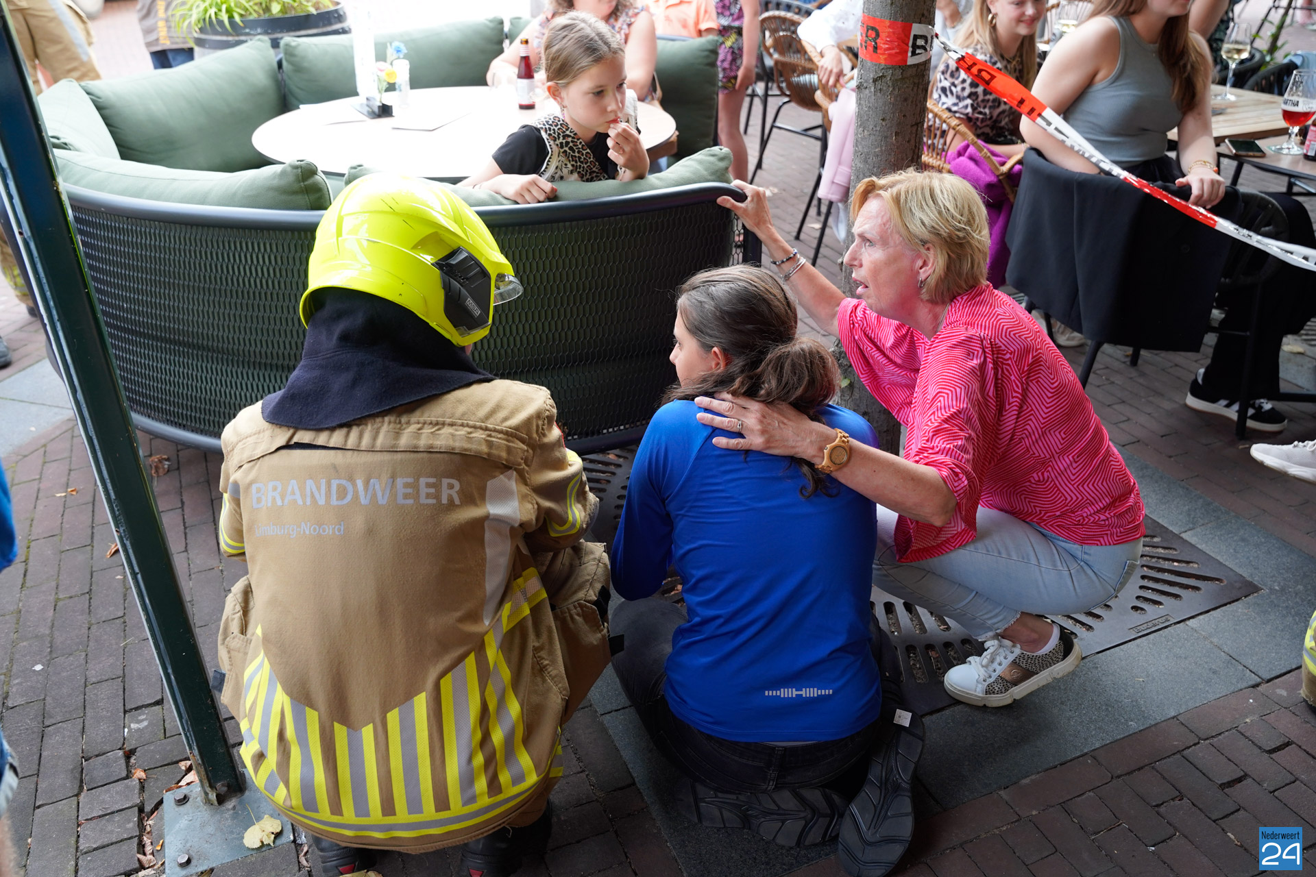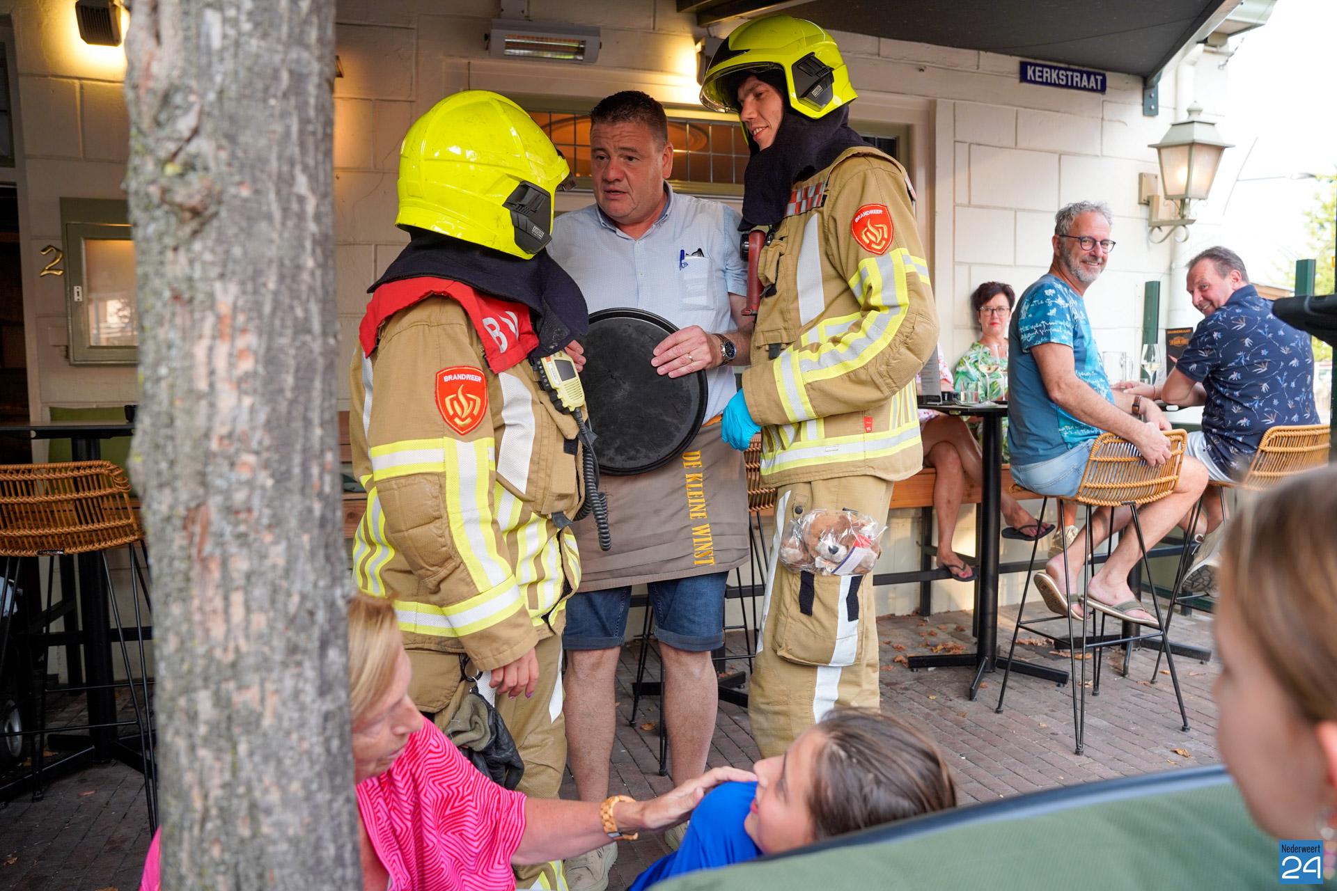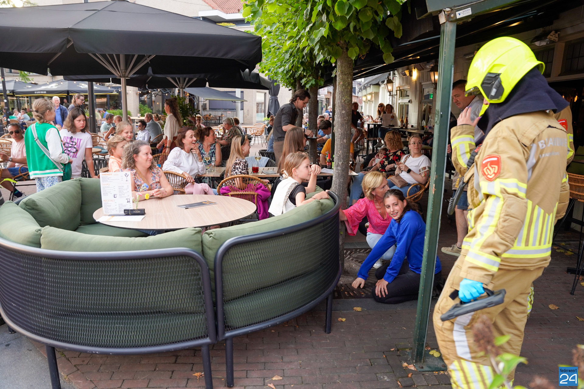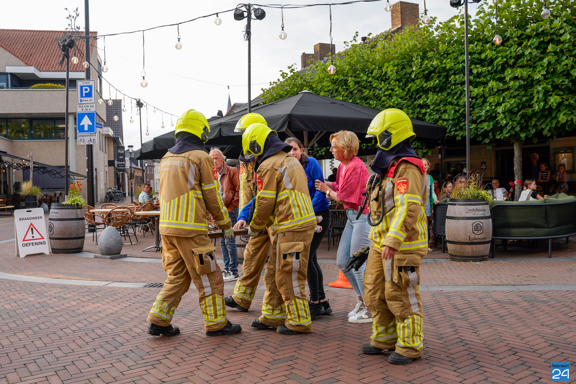 Brandweeroefening op vol terras bij De Kleine Winst in Nederweert