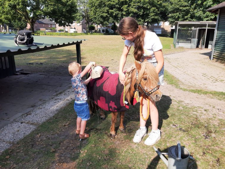 Kinderen die regelmatig de pony’s en andere dieren in de weide verzorgen, kwamen vandaag speciaal terug om de dieren extra te verwennen. Hun aanwezigheid zorgde niet alleen voor extra aandacht, maar ook voor een gezellige sfeer in de weide.