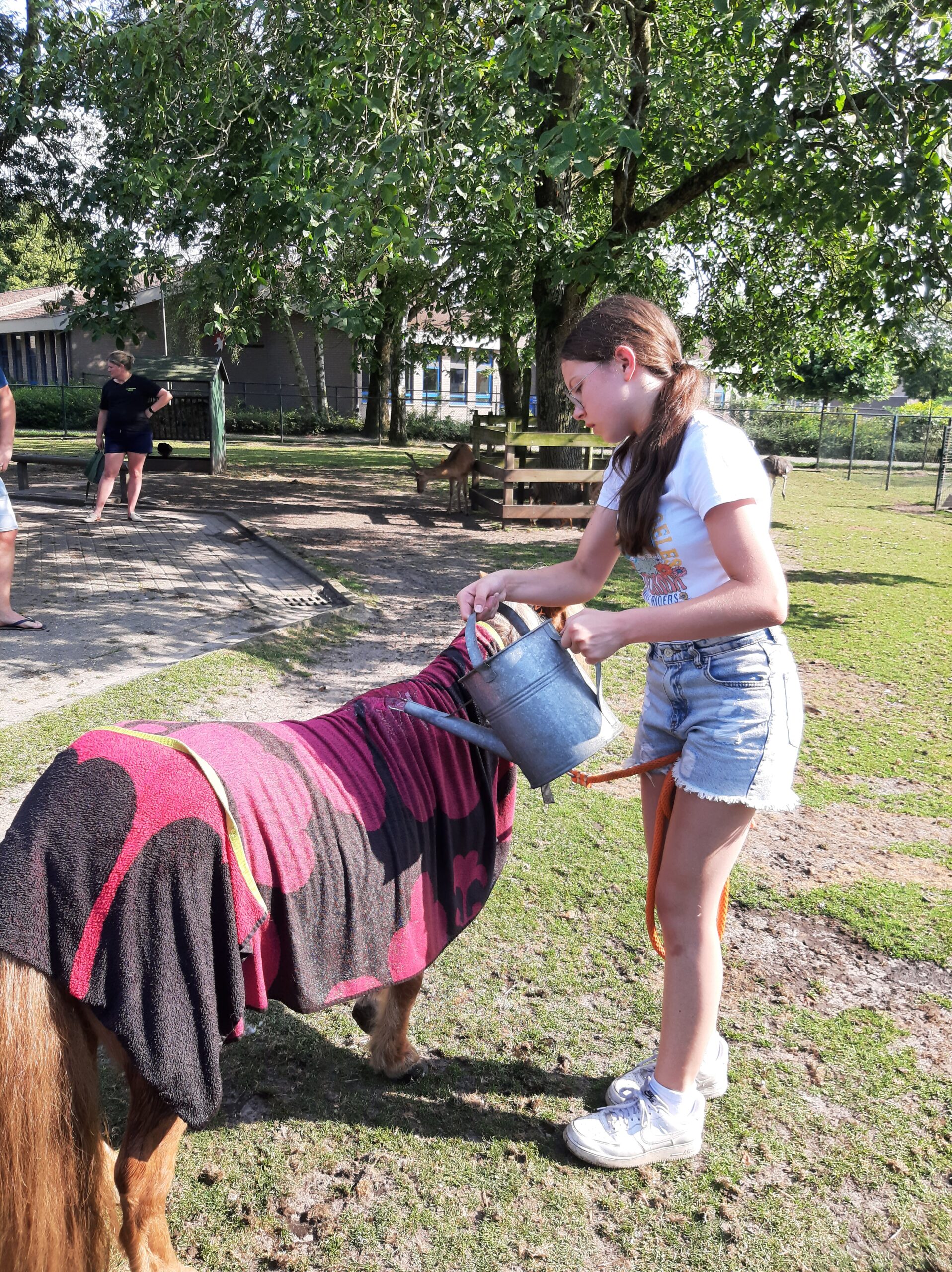 Met de zomerse hitte in volle gang, werden de dieren getrakteerd op gekoelde badlakens, die zorgvuldig werden overgoten met koud water. Deze speciale zorg bracht de nodige verkoeling en werd door de dieren zichtbaar gewaardeerd.