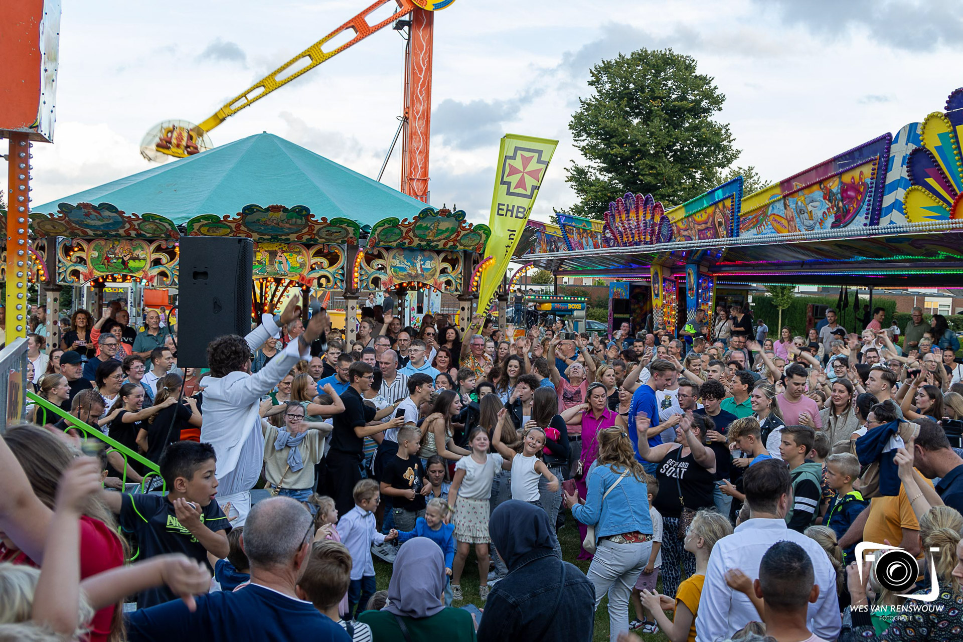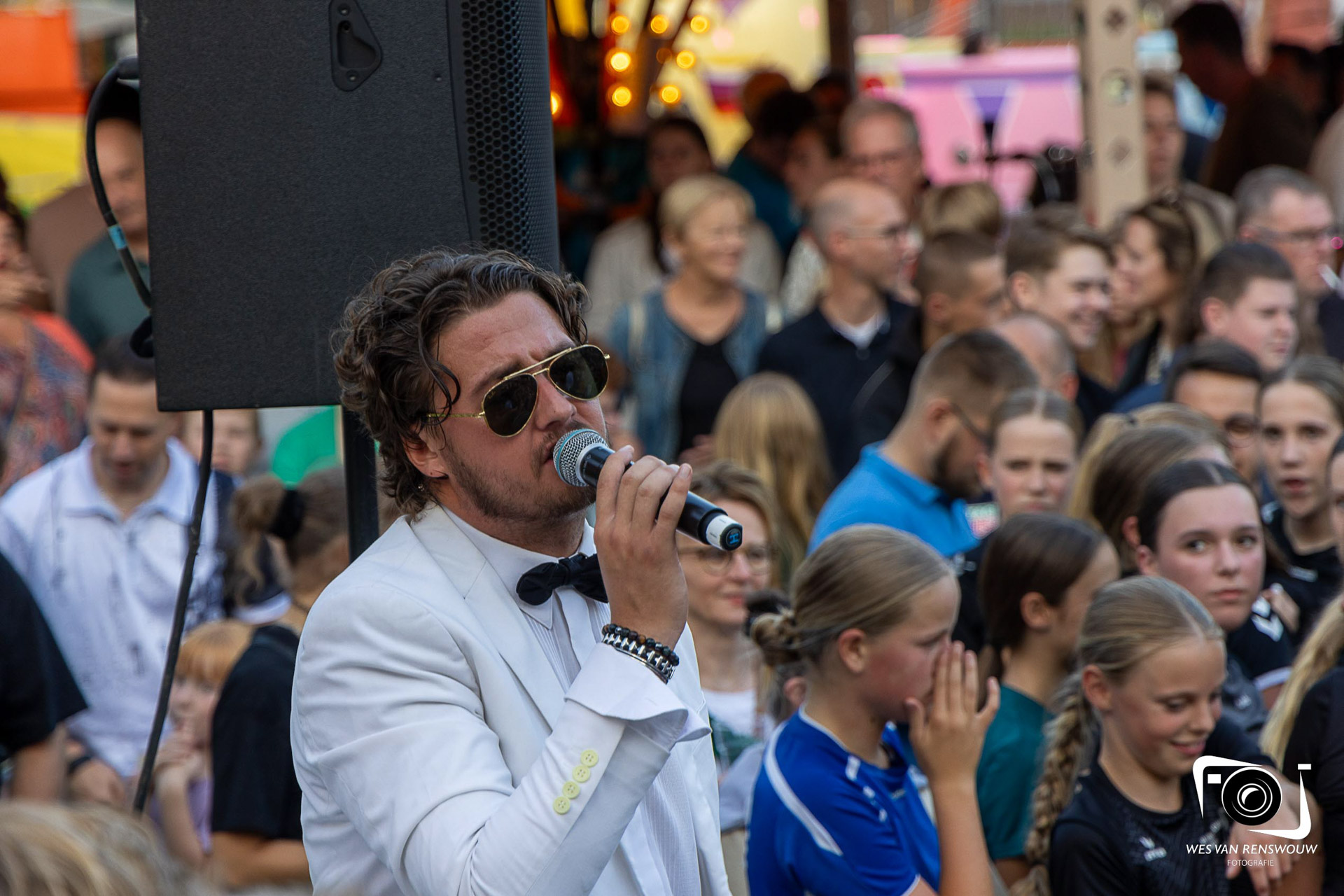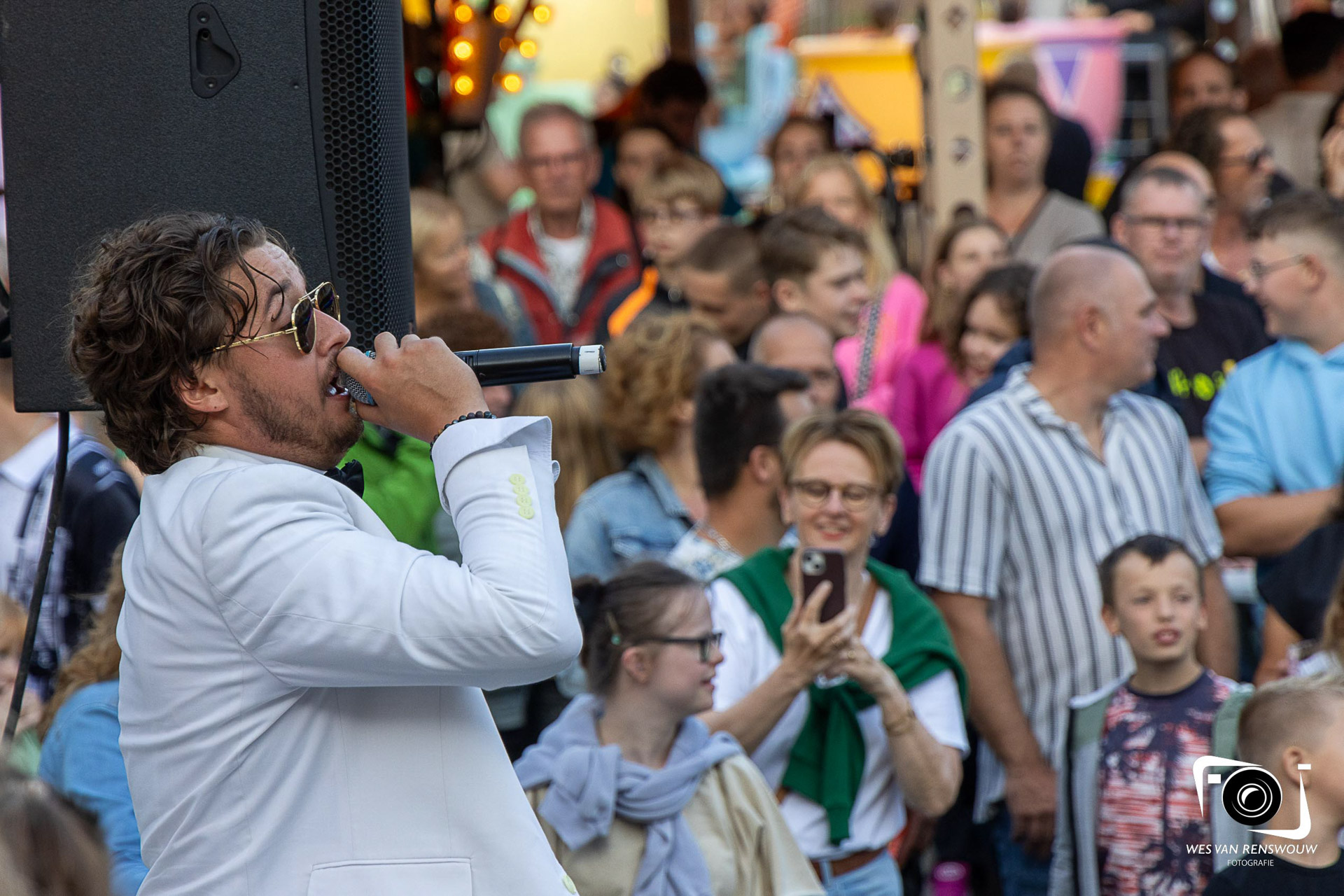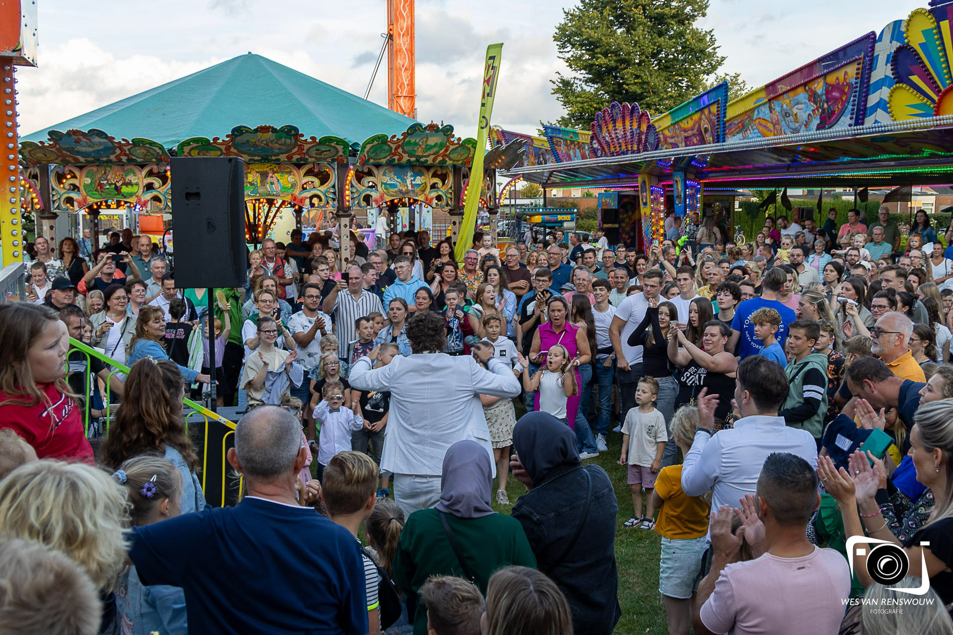 Gisteren is de jaarlijkse kermis in Nederweert van start gegaan, en de aftrap werd groots gevierd met een optreden van niemand minder dan John Tana. De zanger, bekend van zijn hits als Boursin, Daan Kom Iech Mer Aon en Bla, Bla, Bla, zorgde voor een feestelijke sfeer op het Raadhuisplein. Vanaf 19.30 uur bracht hij het publiek in beweging met zijn energieke show, en zoals beloofd zette hij de zaak flink op zijn kop.