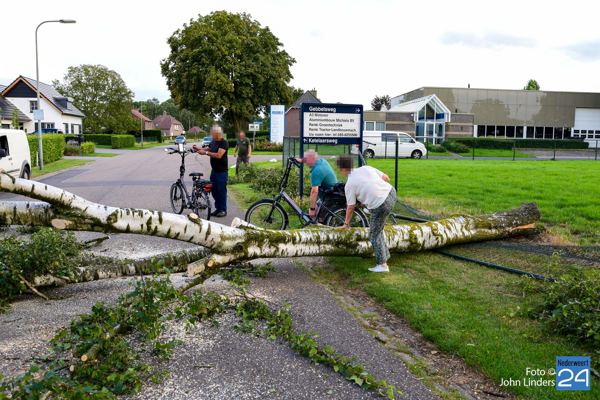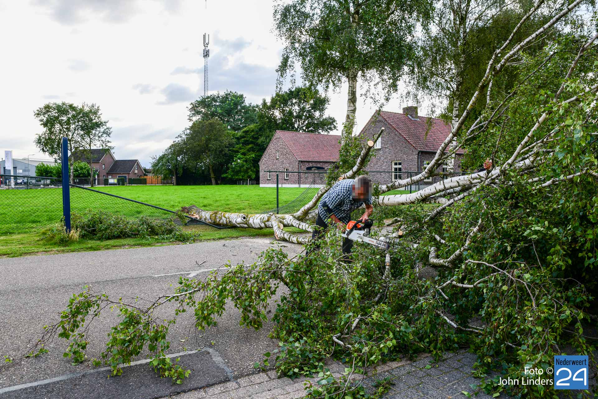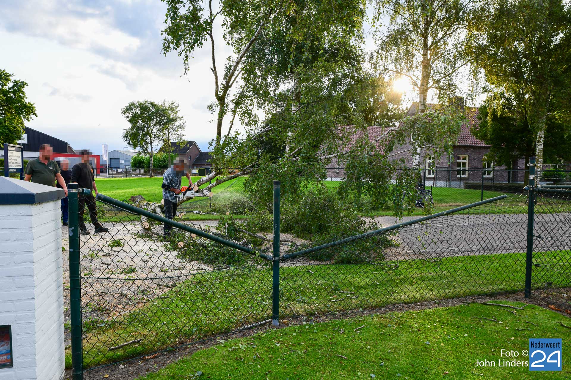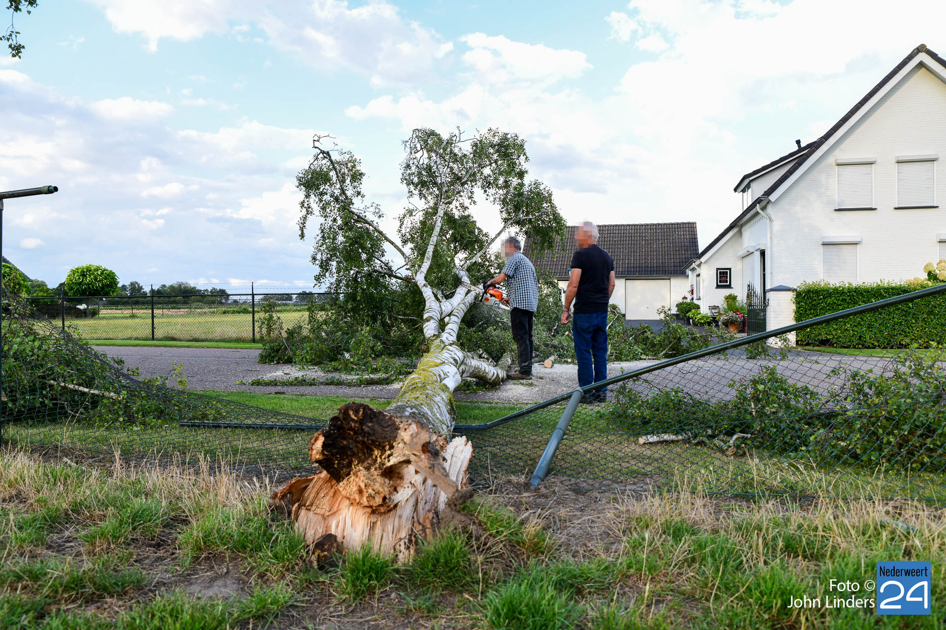 Het hekwerk van de eigenaar en van de overburen werd flink beschadigd. Gelukkig vielen er geen gewonden. De politie werd gebeld maar de eigenaar en enkele buurtbewoners begonnen zelf aan het karwei. De motorzaag werd in de boom gezet en de buurtbewoners hielpen alles netjes van de weg af te halen.