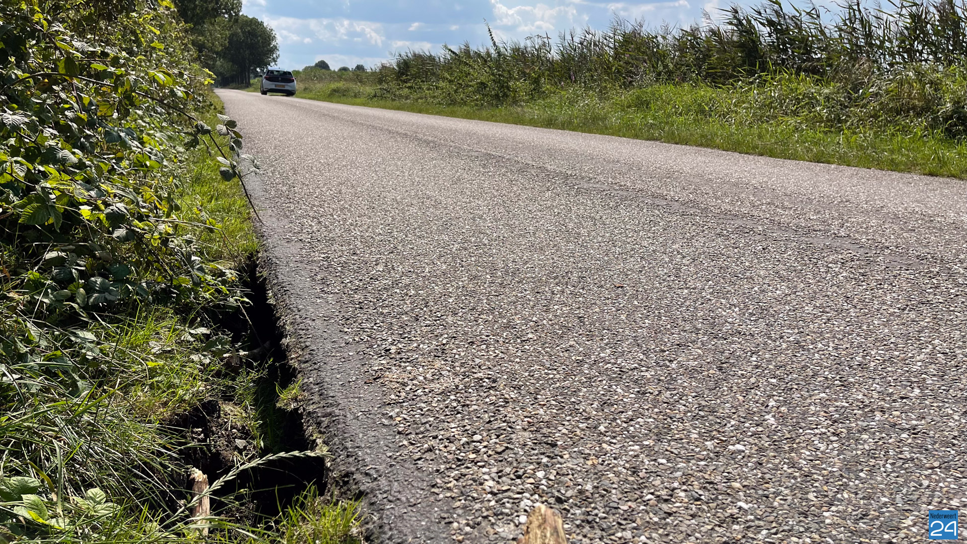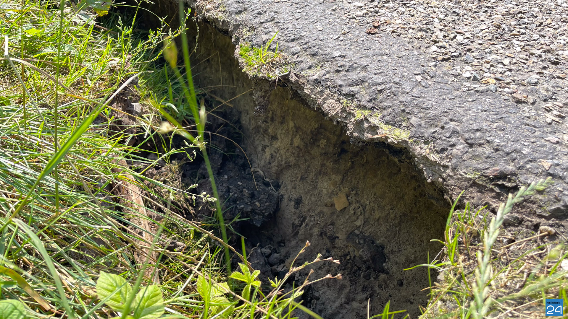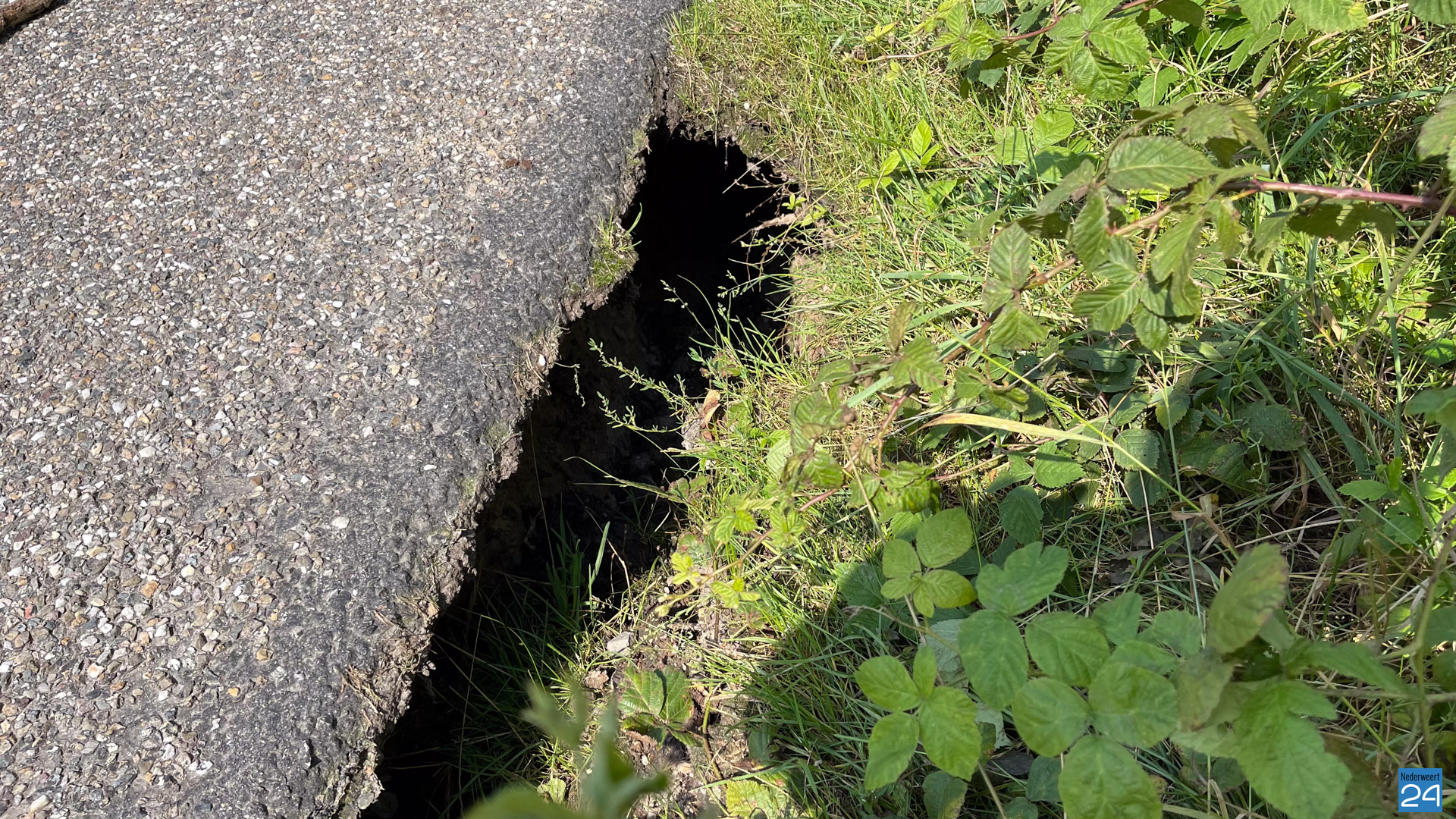 Op de Bloemerstraat in Nederweert is een kleine sinkhole ontstaan in de berm direct naast het asfalt. Dit zorgt voor een gevaarlijke situatie.