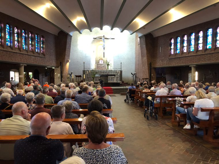 Men neme: een mooie nazomeravond, een groep bevlogen presentatoren, een geoliede organisatie, een programma met inhoud en vertier en een gezellige nazit. En voila: dat is het recept voor een prachtige cultuurhistorische erfgoedbijeenkomst. Want dat was het zeker, afgelopen dinsdag in Nederweert-Eind. Meer dan 200 deelnemers kwamen af op het cultuurspektakel rond de kerktoren van Eind. Een mooie compliment voor de organisatie en de Eindse gemeenschap. Dit was de laatste avond in een mooie cyclus ‘Gluren bij de Buren, die ook dit jaar weer op tournee was door het grensgebied van Belgisch en Nederlands Limburg.