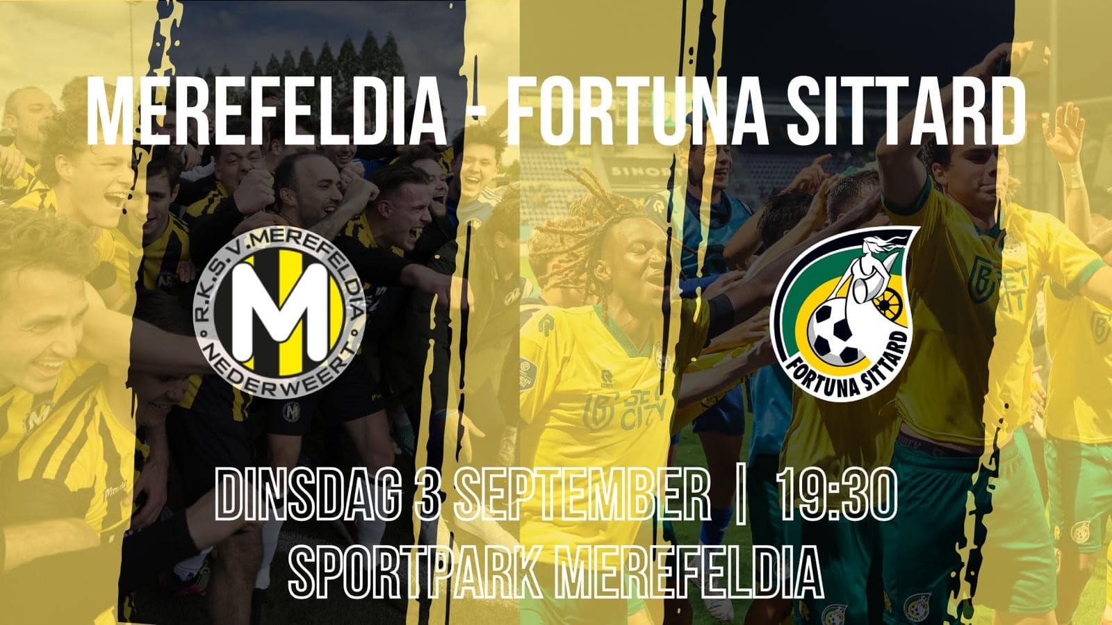 Dinsdag 3 september speelt Merefeldia een extra oefenwedstrijd. In Nederweert is dan Fortuna Sittard te gast. De eredivisieclub treedt aan met de spelers welke aanstaande zaterdag niet starten tegen NEC. De aanvang dinsdag is 19:30 uur en de entree is gratis.