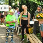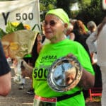 Echter zondag 1 september braken ze een record. Een loopster deed voor de 500e keer mee. Toen in 1980 Paul Schors, die als genodigde aanwezig was, heeft niet gedacht dat een kleine 45 jaar later er iemand zou zijn die de grens van 500 deelnames zou bereiken. Leny Gillessen lukte dat zondag. Dat iemand 500 keer meegedaan heeft van de 522 lopen, die er gelopen zijn. Dat is enorm knap. Eerst wilde ze haar vragen, Leny waar ben je die andere keren geweest. Maar dat had ze al uitgelegd. Daar had ze een goed excuus voor. Terugkomen op zondagmorgen uit Australië is lastig, ook als je een blessure hebt gaat het niet. Maar zij kwam wel terug uit Luxemburg of Duitsland. Dan stapte ze op zondagmorgen in de auto en reed dan naar de IJzeren Man in Weert om te lopen en ging later in de middag weer terug. Ze was er dus bijna altijd. Team Hema -Posno Volksloop bood Leny een herinnering bord aan en een bos bloemen.