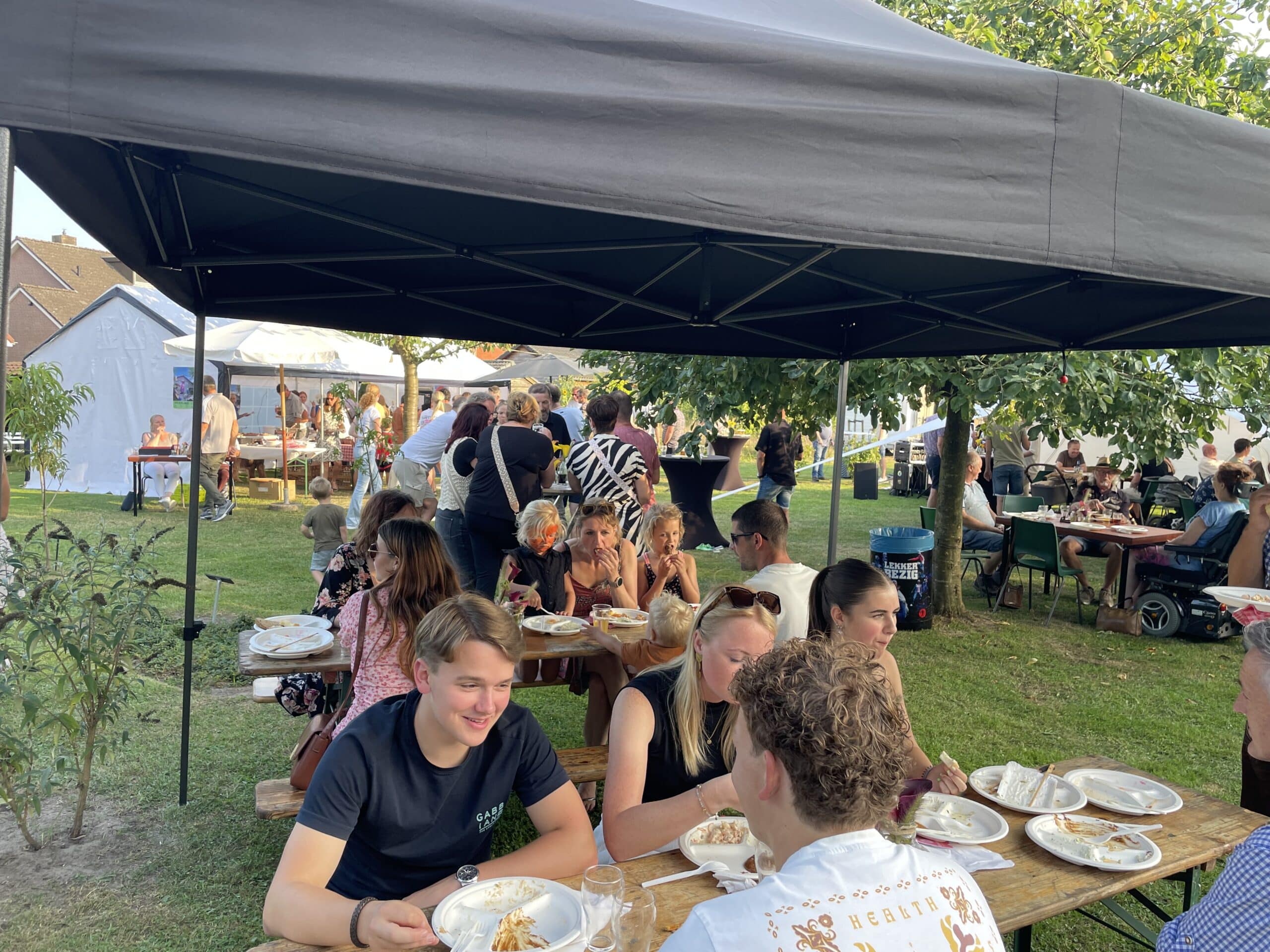 Zaterdag 31 augustus hadden maar liefst 225 mensen uit Leveroy zich opgegeven voor de Dorps BBQ, meer dan één vijfde van het totale inwoneraantal van het dorp! Ook een aantal dorpsgenoten die zich niet hadden opgegeven voor de BBQ, kwamen nog even een kijkje nemen.