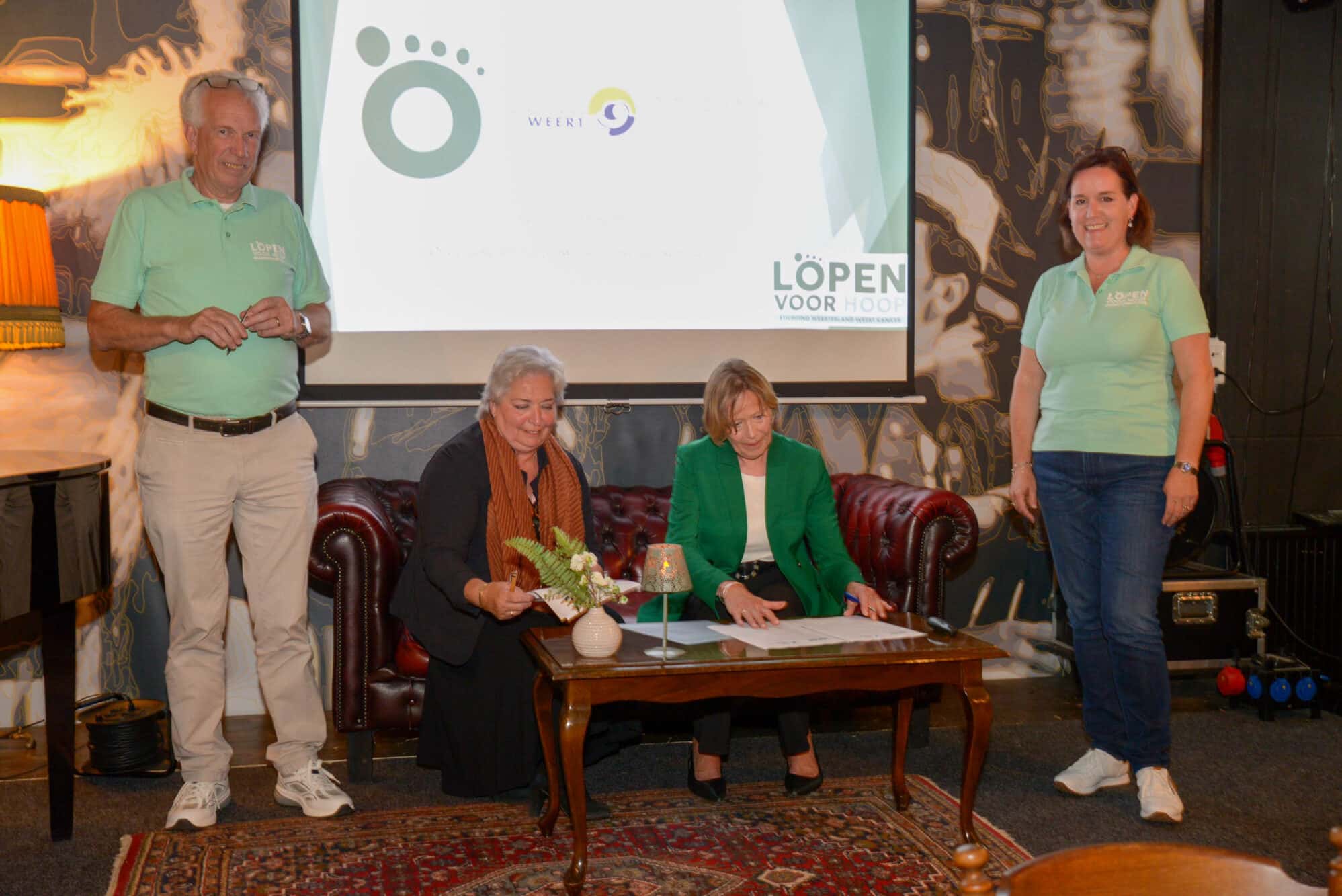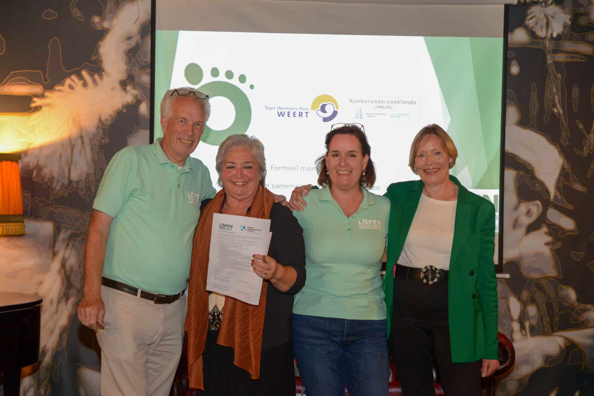 De twee goede doelen waarvoor geld wordt ingezameld, het Toon Hermans Huis in Weert en Kankeronderzoekfonds Limburg stelden zich voor en ondertekenden een samenwerkingsovereenkomst met de organisatie Stichting Weerterland weert kanker. Dit is de organisatie die Lopen voor Hoop op 17 mei 2025 voor de tweede keer organiseert op het terrein van PSW, Park aan de Bron aan de Maaslandlaan in Weert. Tijdens de avond werd meer verteld over het programma 2025, de opzet, de aparte Kinderloop, de goede doelen en was er ruimte om vragen te stellen. Het inschrijven kan vanaf nu via de website www.lopenvoorhoop.nl
