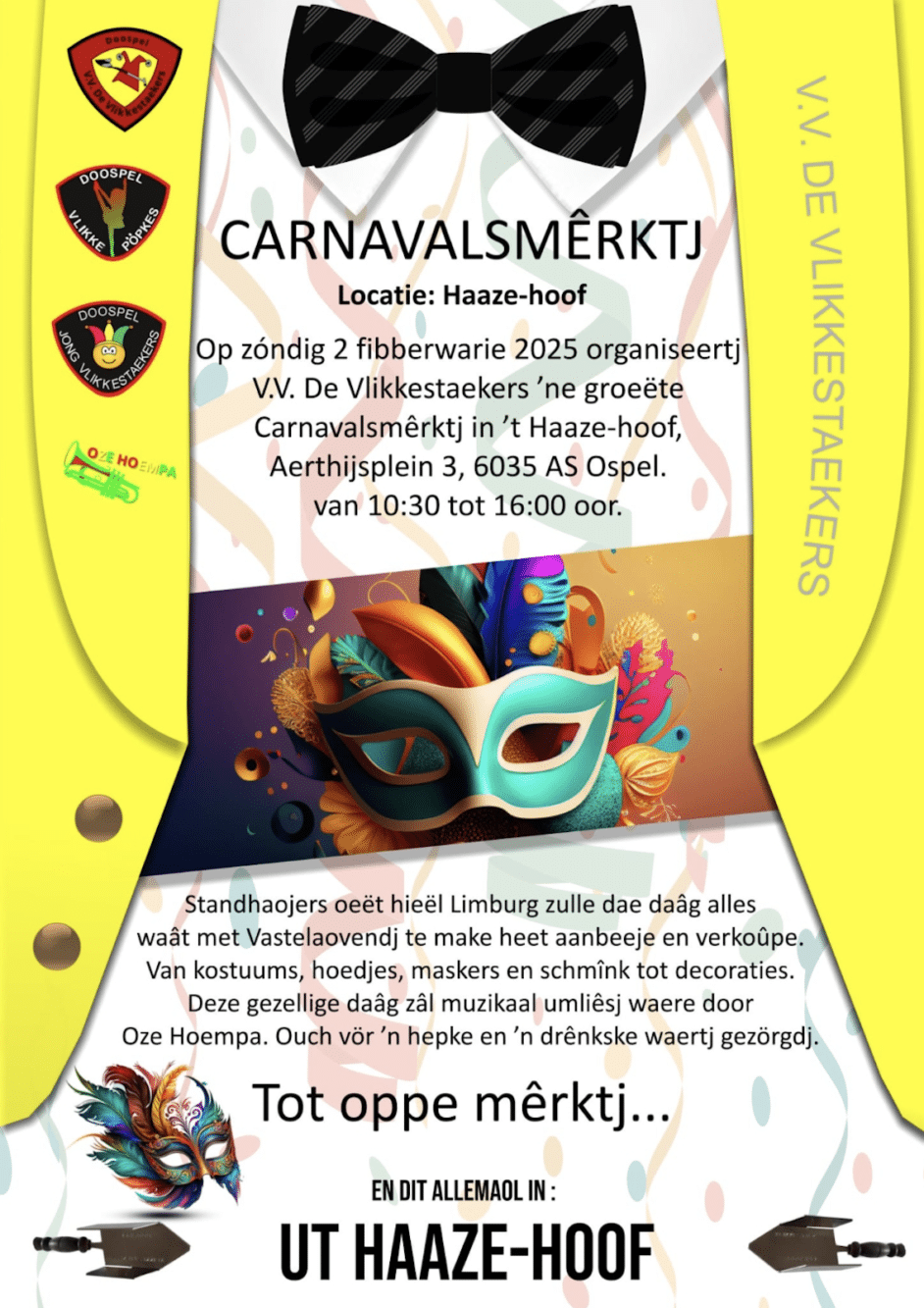 Op zondag 2 februari wordt de grootste (binnen) carnavalsmêrktj van Limburg georganiseerd.