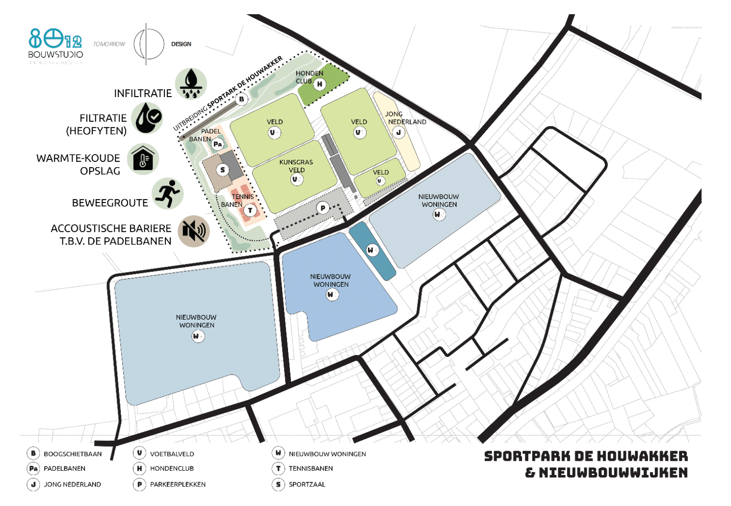 In een situatieschets laten de werkgroepleden zien wat mogelijke opties zouden kunnen zijn. Zo is op een tekening te zien dat er ruimte is voor onder andere een boogschietbaan, padelbanen, een thuis voor Jong NL, enkele voetbalvelden (waaronder een kunstgrasveld), ruimte voor de hondenclub, tennisbanen, een sportzaal, uitgebreide parkeermogelijkheden en zelfs mogelijkheden voor woningbouw.