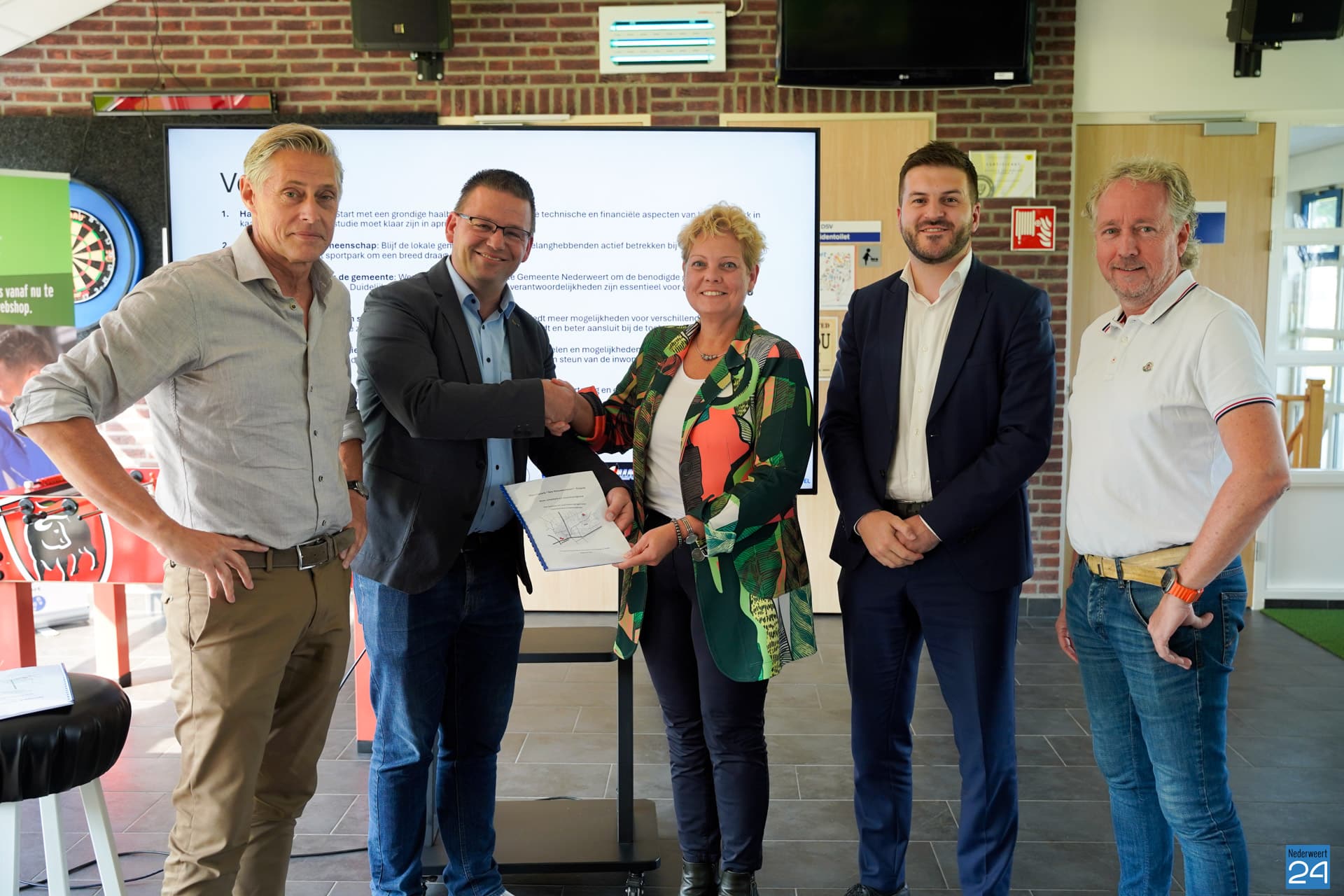Na de presentatie werd het conceptplan door de werkgroepleden Frank Jacobs, Jeroen Hennissen en Erwin Pijnenburg overhandigd aan de aanwezige wethouders Meessen en Dieteren. De kartrekkers hopen dat het college aan de slag gaat en de plannen zal voorleggen aan de gemeenteraad door middel van een presentatie. De werkgroep hoopt in 2028 te kunnen starten met de realisatie van het sportpark, maar is zich ervan bewust dat een nauwkeurig traject zal volgen met vele grote uitdagingen.