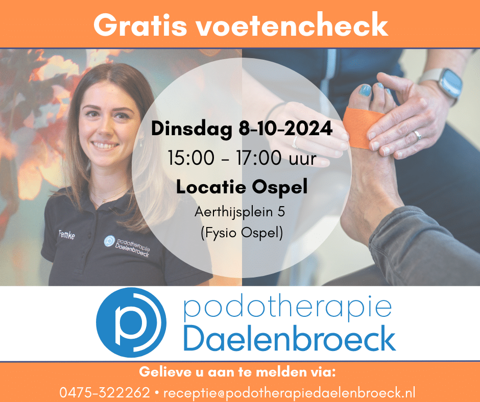 Gratis voetencheck bij Fysio Ospel door Podotherapie Daelenbroeck